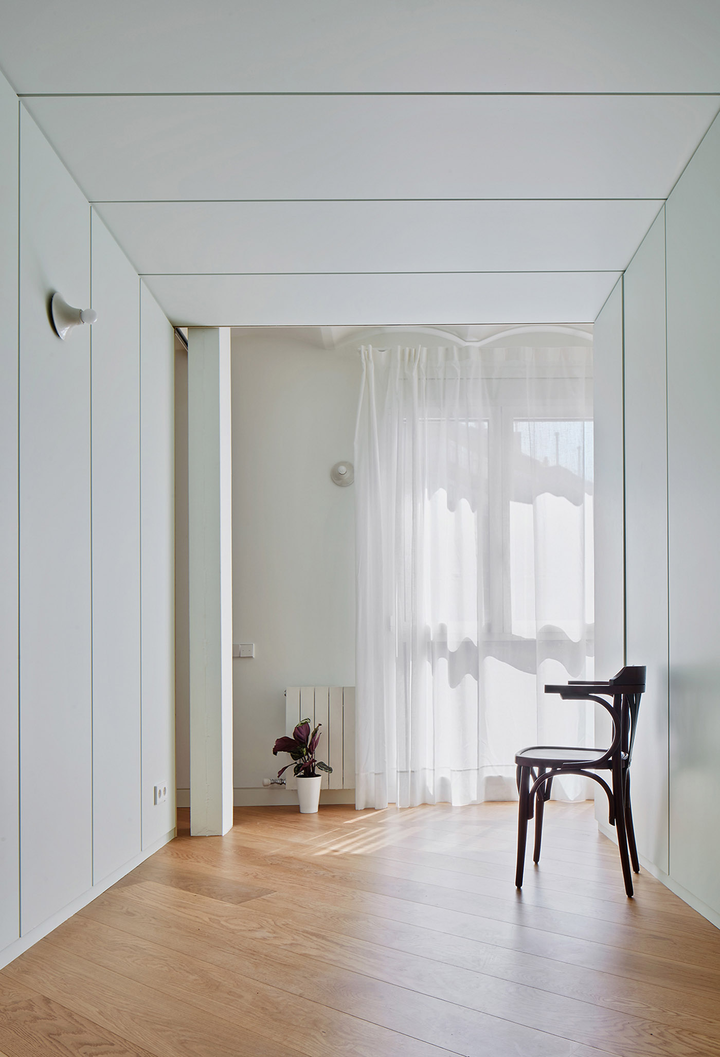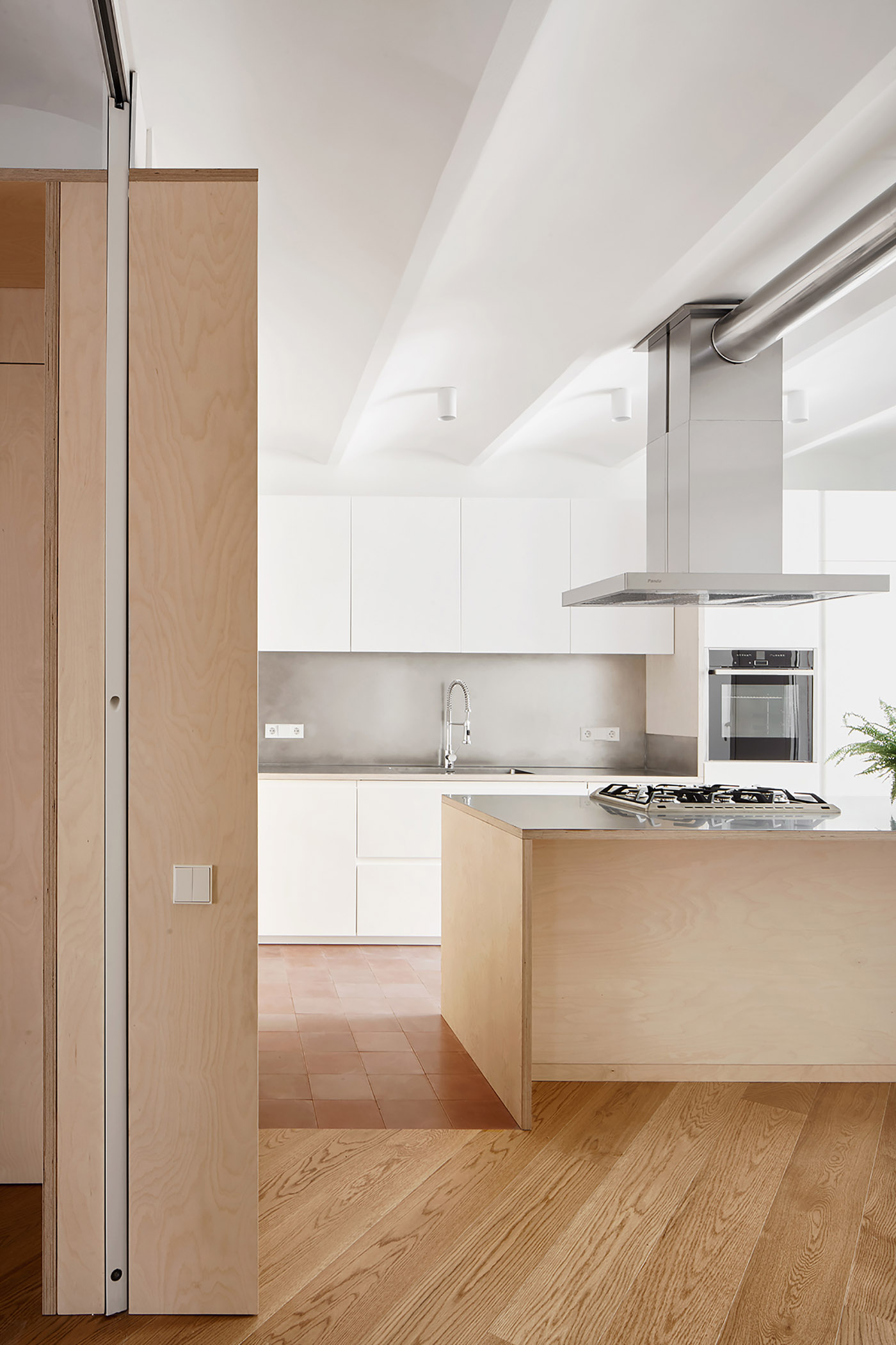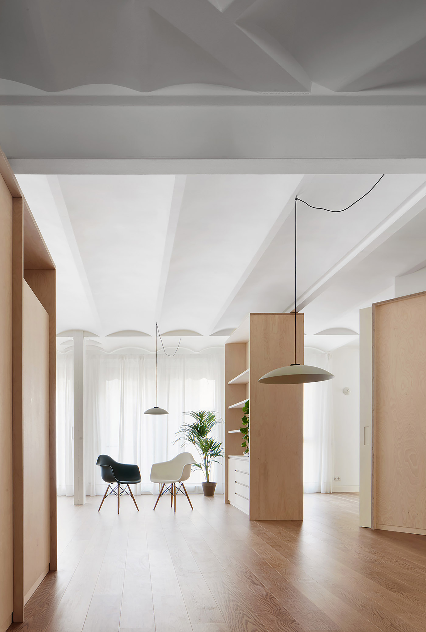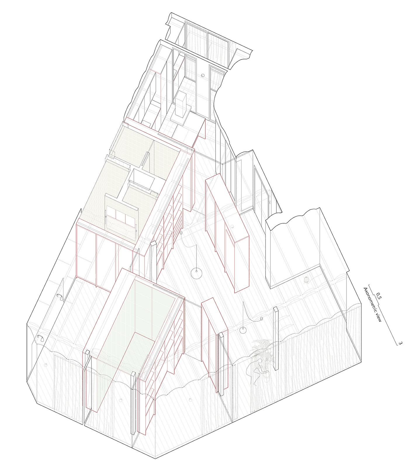 Precedentemente lo spazio era organizzato in una serie di piccole stanzi e corridoi con funzioni definitive, modellati da pareti non portanti. Demolendo le pareti, viene definito un involucro permanente all’interno del quale verranno organizzati ambienti abitabili tramite piccoli interventi . Il legno viene utilizzato per sottolineare il divorzio tra spazio e struttura