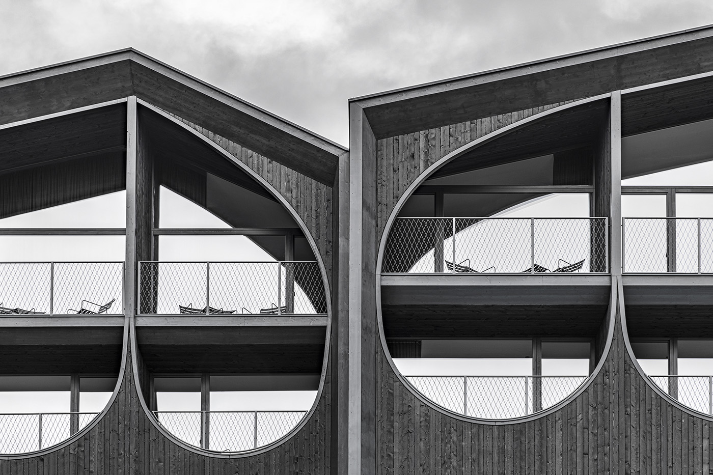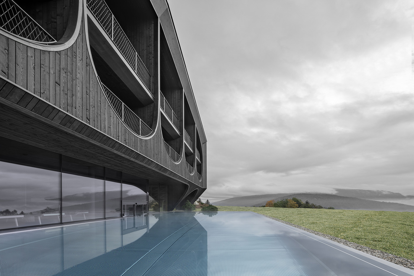 Le forme curve della facciata, ispirate ai forconi dei contadini locali, caratterizzano l'Hotel Milla Montis situato a Maranza, un piccolo paese dell'Alto Adige con una significativa storia agricola