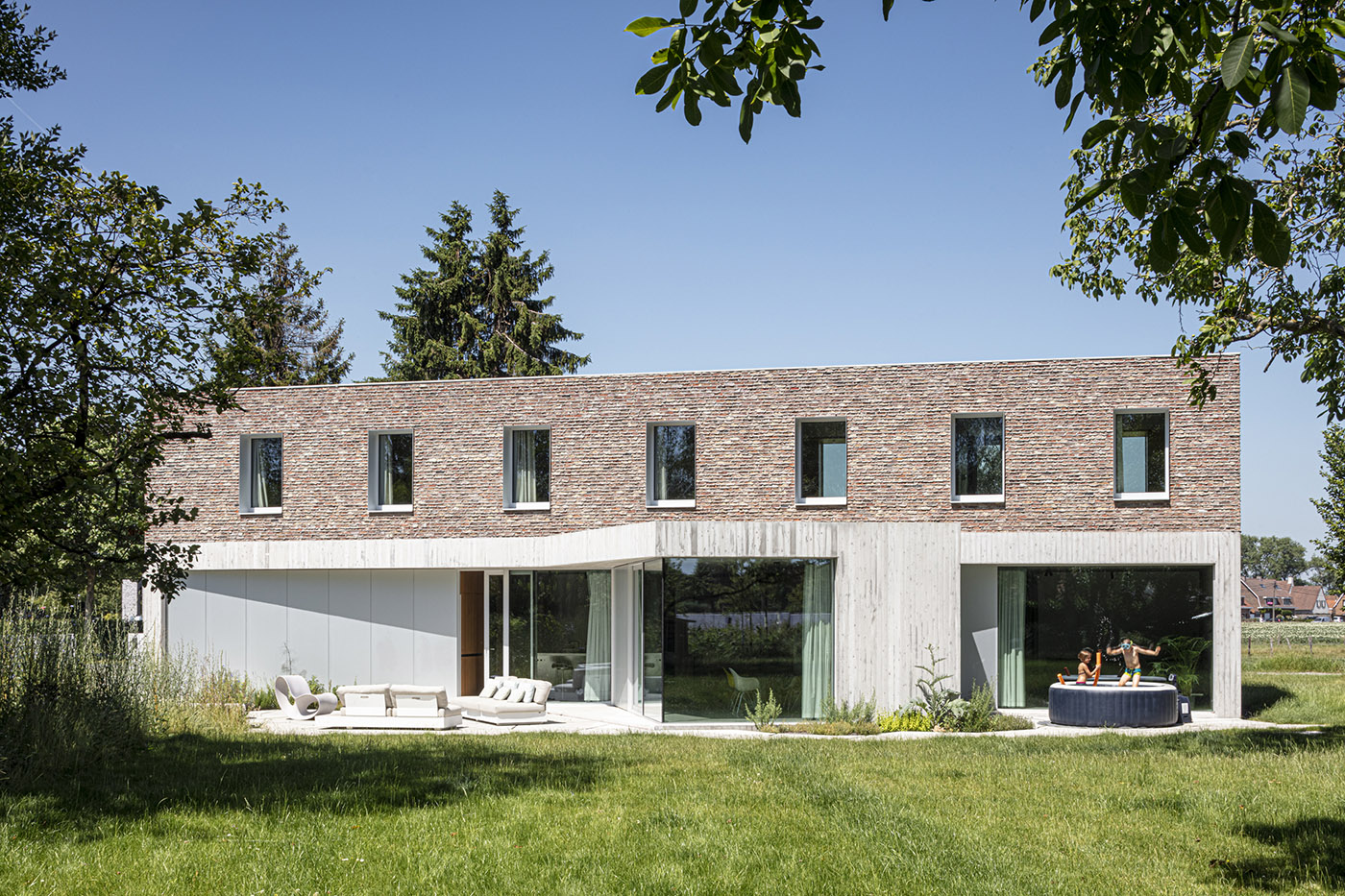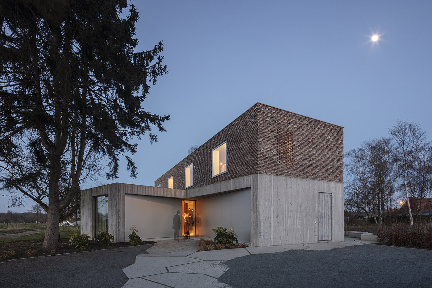 House DeDe è un progetto per un cliente privato, desideroso di disporre di una nuova casa. La caratteristica più evidente del progetto è l’uso dei mattoni del vecchio fienile riciclati e riutilizzati per formare il livello superiore della casa. Lo studio OYO decide, inoltre, di sovrapporre l’impronta rettangolare del fienile con un’ulteriore sezione trasversale, creando spazi privati e viste incorniciate del giardino