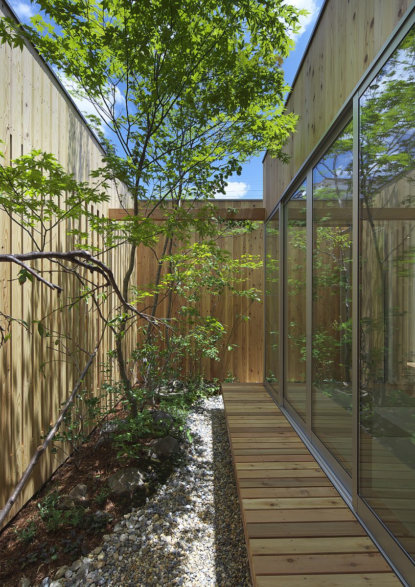L'apertura di corti e spazi aperti all'interno dell'abitazione e la chiusura verso l'esterno è la particolarità della casa progettata e costruita al centro di Osaka, che gode al suo interno di un giardino alberato, permettendo l'ingresso della luce naturale