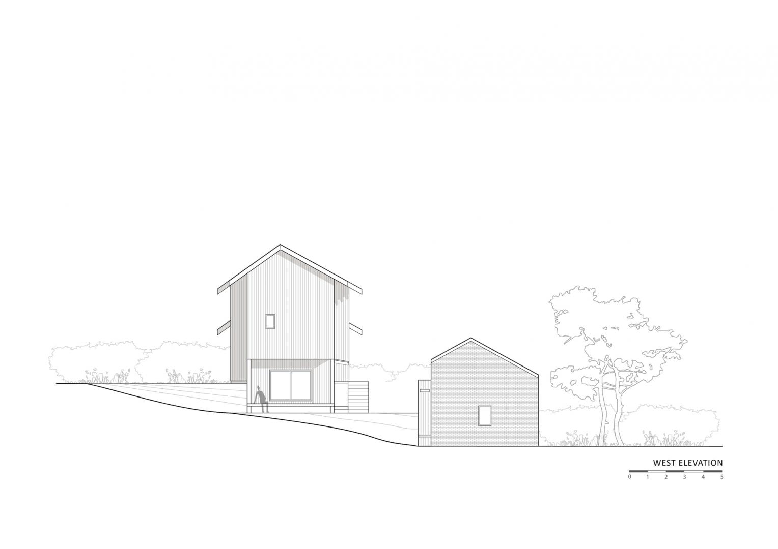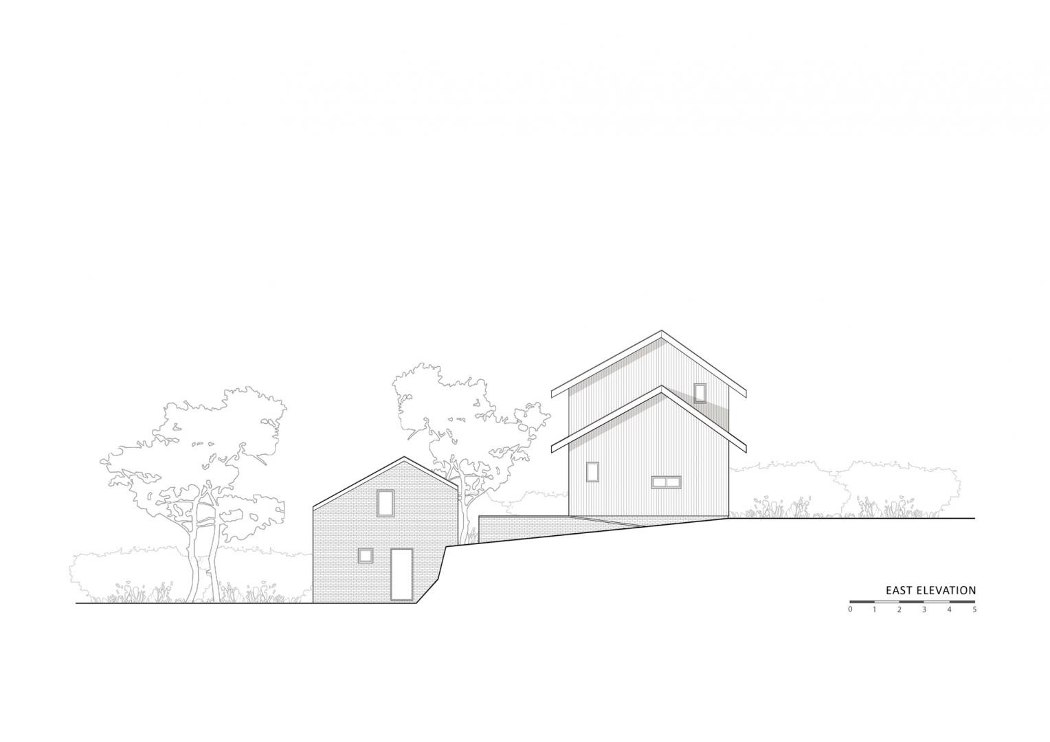 La casa si pone naturalmente in base alla lenta via da sud a est. Diviso in due, uno con esterno in legno incorpora vita domestica, mentre l'altro finito in mattoni rossi racchiude la ricreazione e riposo della coppia dell'utente. Uno si affaccia a sud, l'altro in sé si trasforma un po' a est, correttamente di fronte alla montagna lontano. I due si discostano in mezzo per lasciare spazio per un Madang che non ha forma definita propria