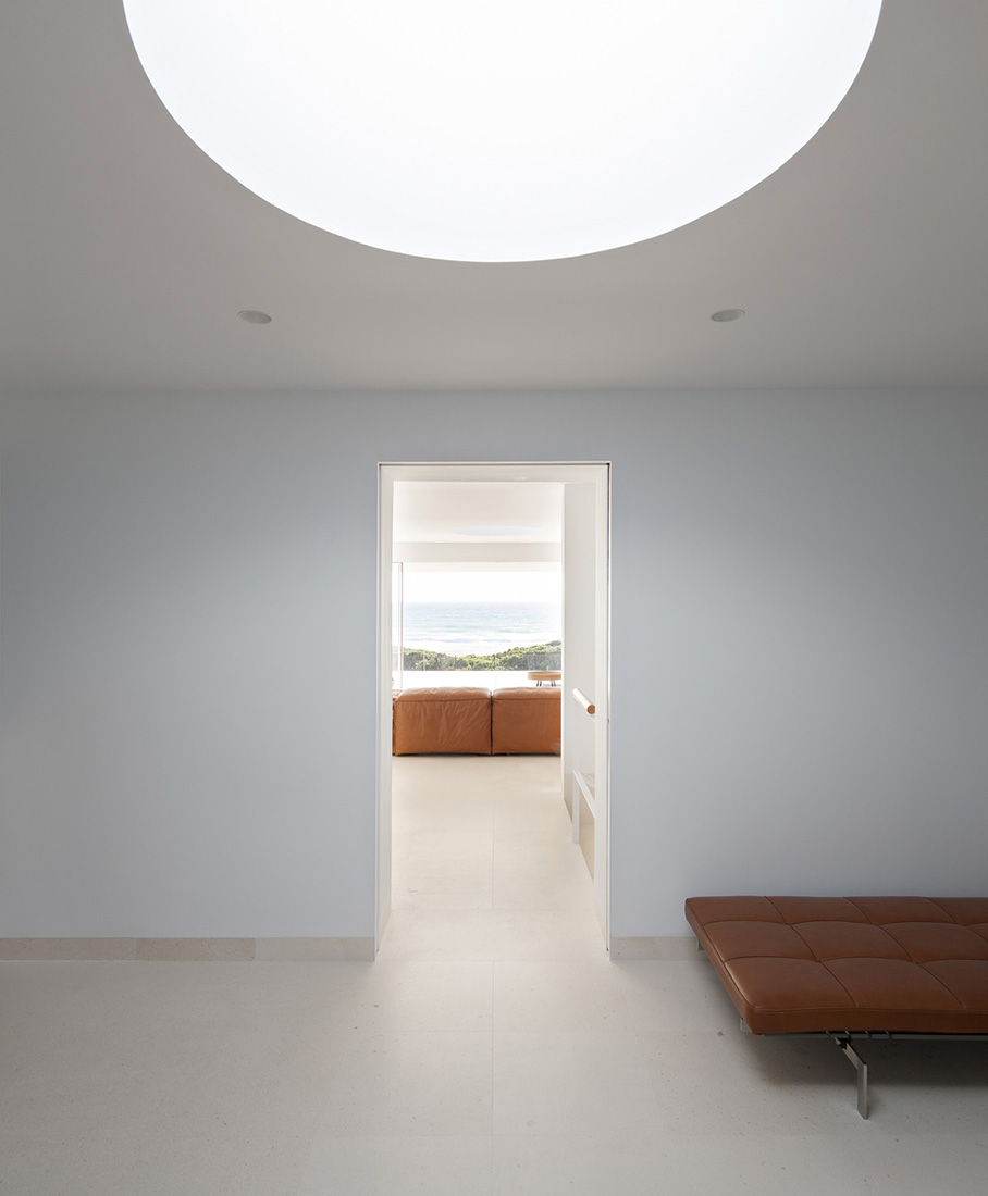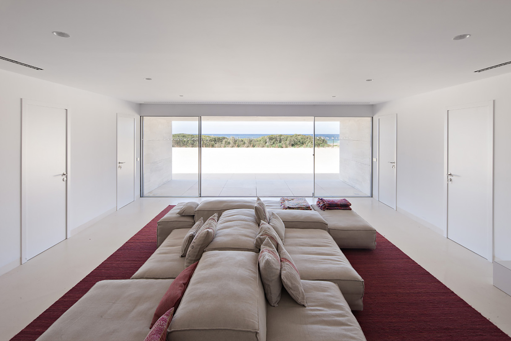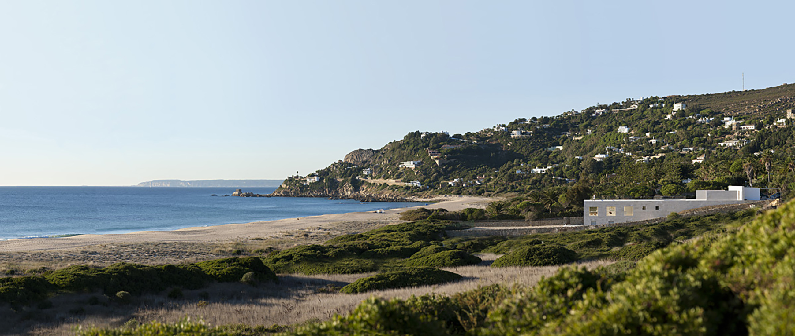 La Villa, progettata dallo Studio Alberto Campo Baeza, si solleva come un piano infinito ai margini delle acque dell'Oceano Atlantico, costruita come se fosse un molo sul lungomare. La struttura in travertino si confonde con la sabbia e la piscina sembra un continuo del mare