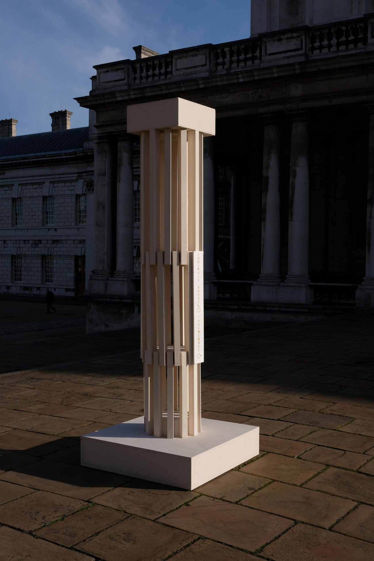 In occasione dell'evento presso l'Old Royal Naval College e la Queen's House a Greenwich, gestito dall'Architecture Foundation, lo studio EBBA Architects progetta delle semplici strutture dalla forma di colonna che fungono da indicatori sul sito