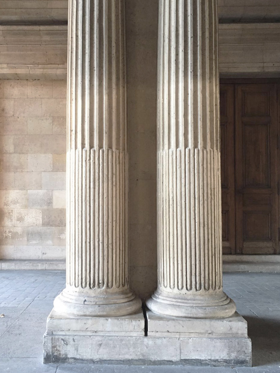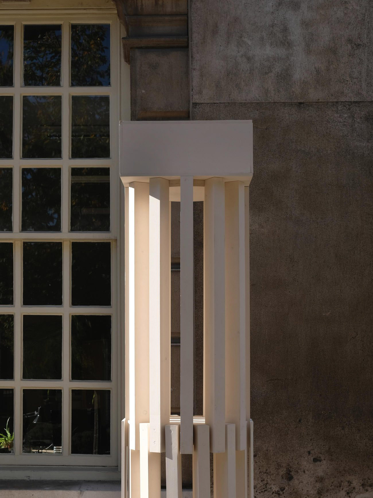 La struttura della colonna vuole sottolineare la rastremazione della stessa, enfatizzando la sua snellezza. Per questo i progettisti decidono di usare dei pali che corrono verticalmente in maniera circolare, da basamento a basamento, capaci di evocare il senso di scanalatura