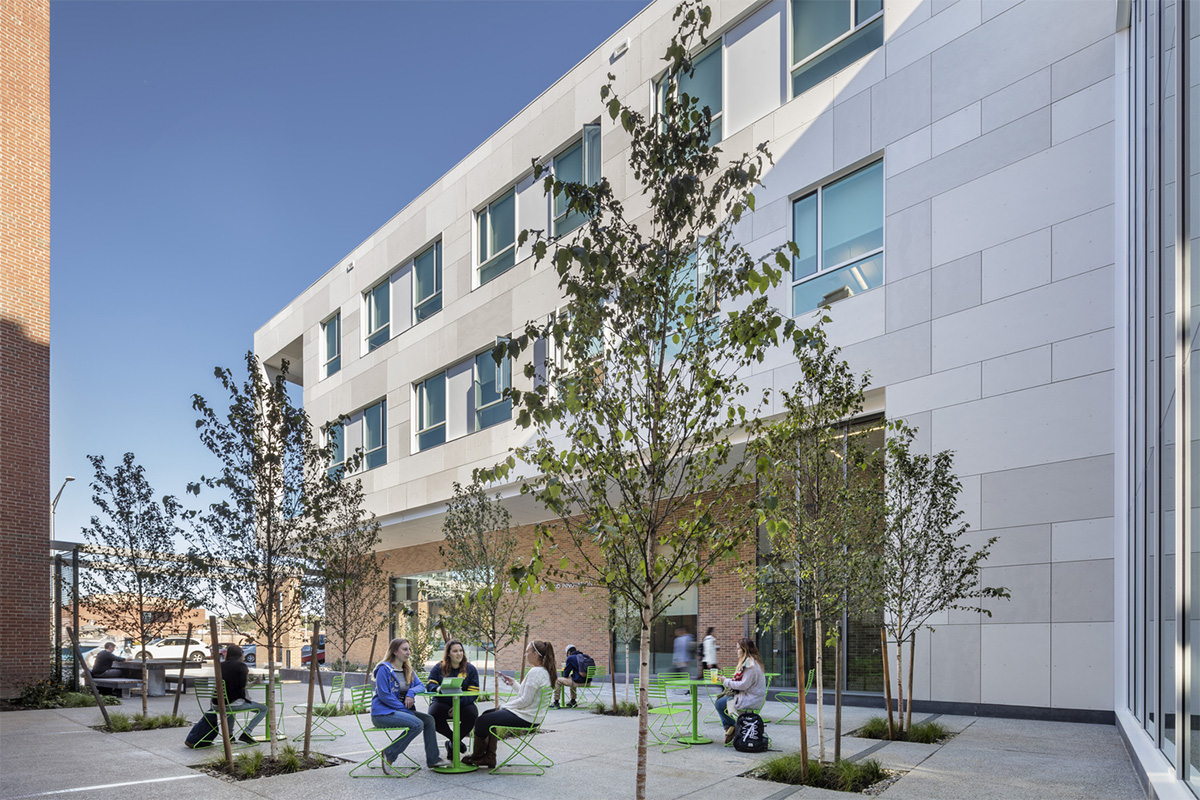Gli architetti sono stati chiamati quindi alla grande sfida di progettare un edificio accademico interdisciplinare con la massima flessibilità e versatilità, per fare questo sono state progettate con grande attenzione le sale studenti e gli spazi comuni che sono stati localizzate vicino agli uffici dei professori per incoraggiare l'interazione docente/ studente e migliorare l’esperienza “out-of-class”