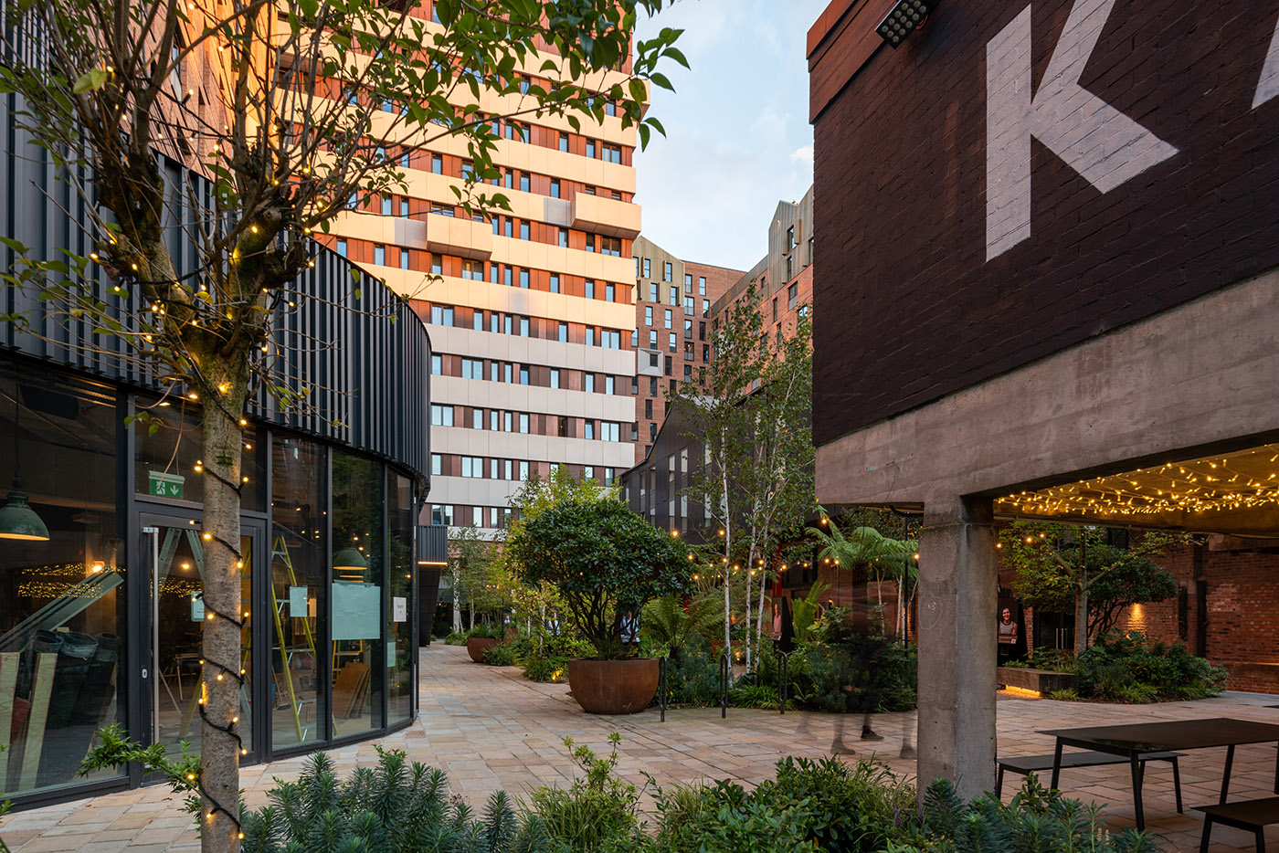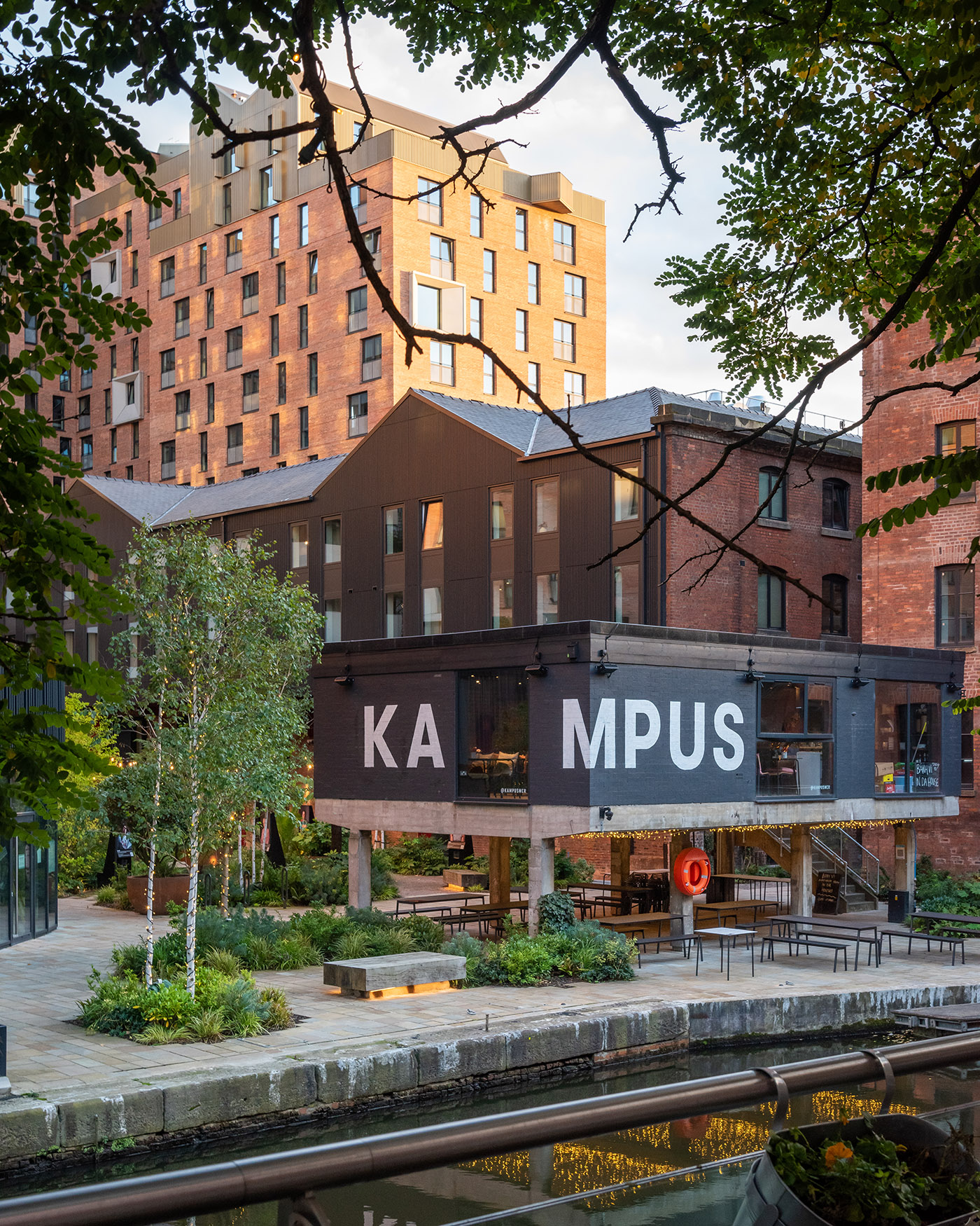 Una varierà di caffè, bar, negozi e ristoranti indipendenti danno vita ad un senso unico del luogo. L’ingresso a KAMPUS avviene tra una serie di spazi verdi, il cuore del progetto, che sono lo sfondo perfetto di eventi sociali