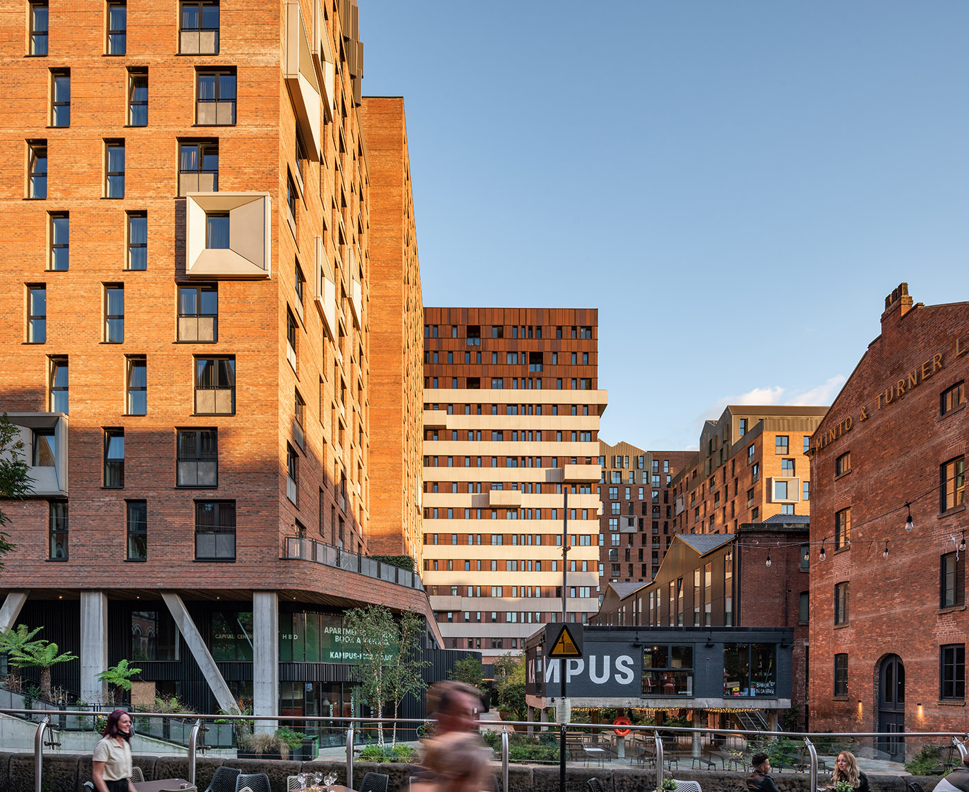 KAMPUS, il nuovo quartiere situato nell’ex campus della Manchester Metropolitan University, è un gioco di pixel: mattoni rossi, aperture alternate, accentuate rendono le facciate degli edifici protagoniste indiscusse del progetto