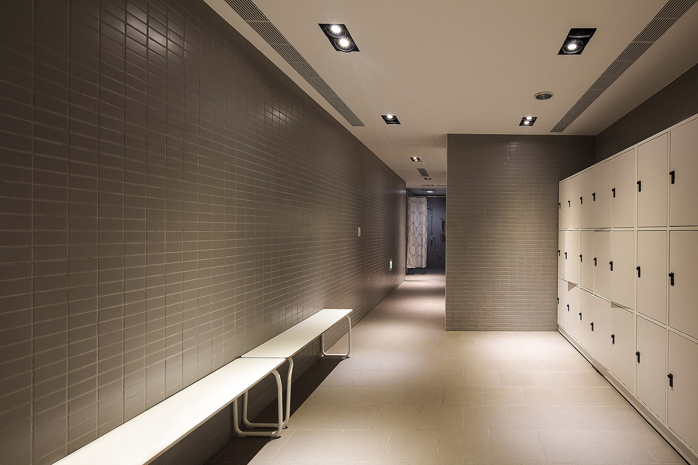 Il nuovo complesso viene allineato all'altezza dell'edificio della scuola elementare adiacente abbassando rispetto al piano strada lo spazio della piscina, a doppia altezza. Il collegamento visivo di tutti questi spazi non solo li interconnette, ma evoca anche un senso di sorpresa, una sensazione paradossale generata entrando in una lobby di altezza normale e poi immediatamente facendo espandere il proprio campo visivo