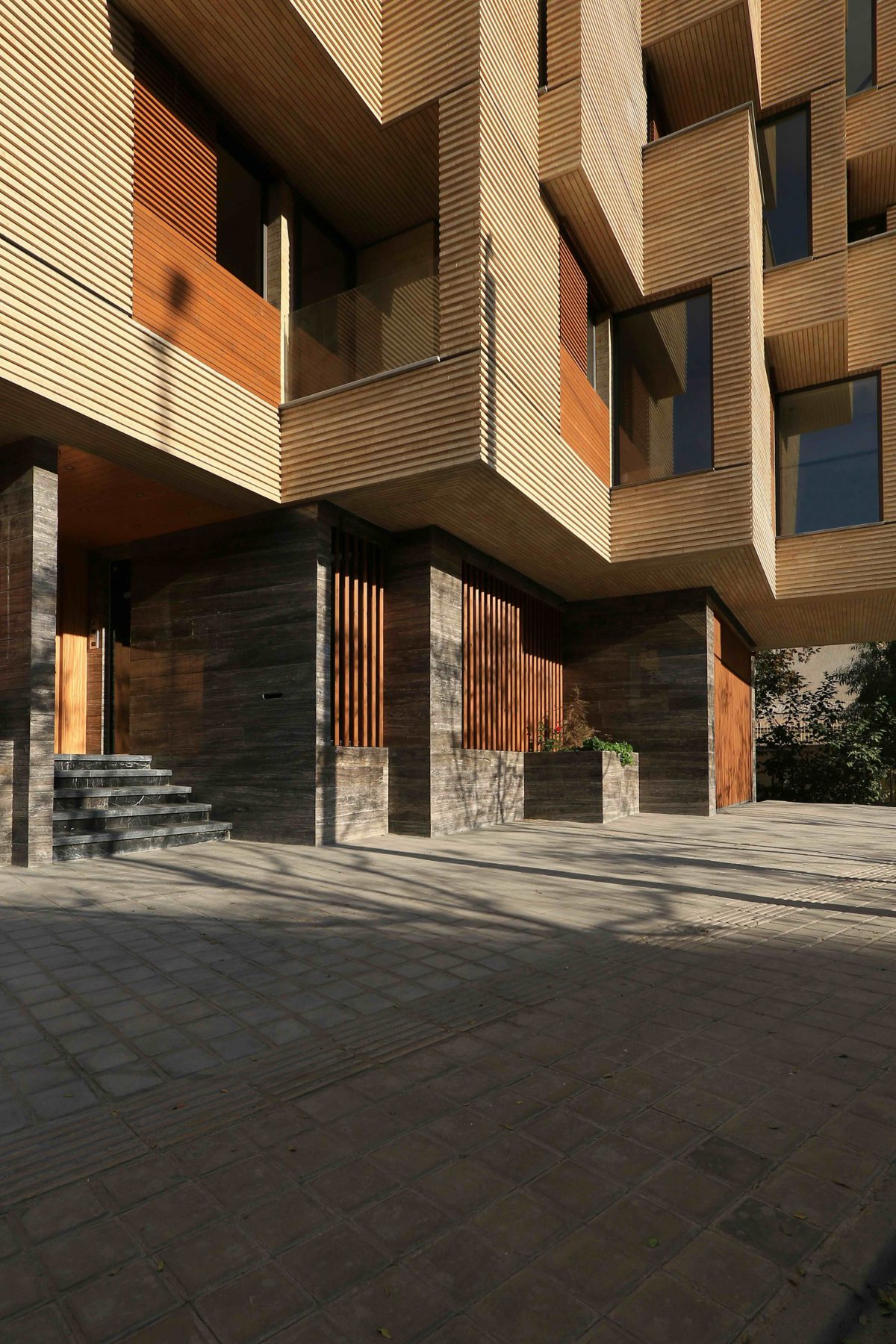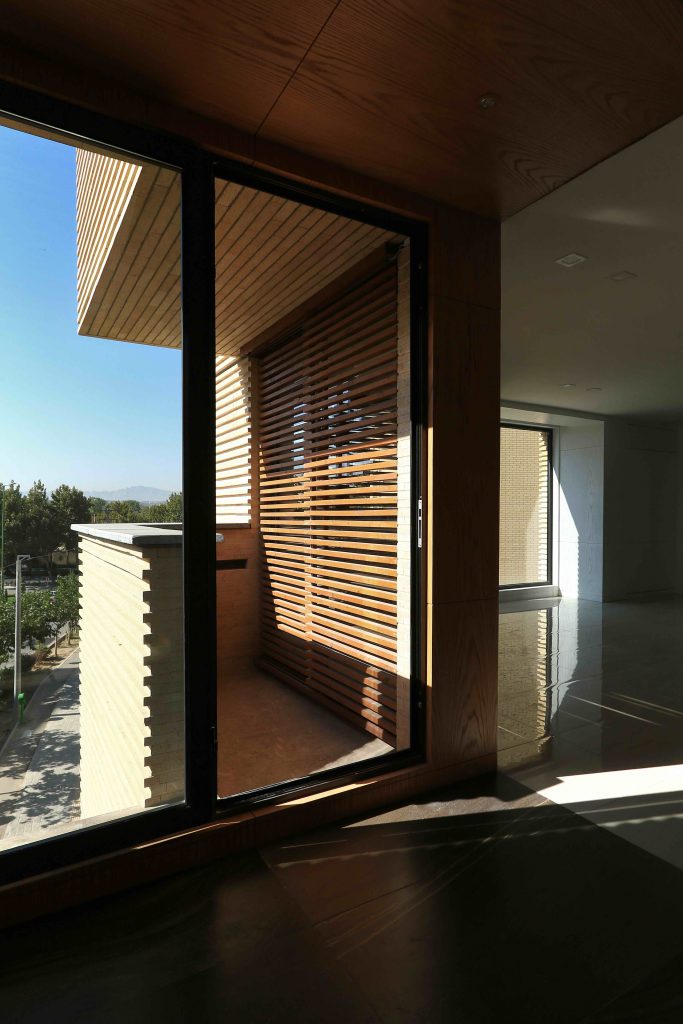 Condominio in una città iraniana. Rivestimento in legno per l'unità abitativa