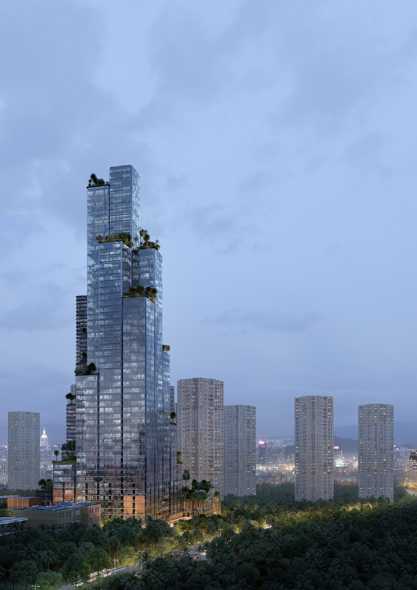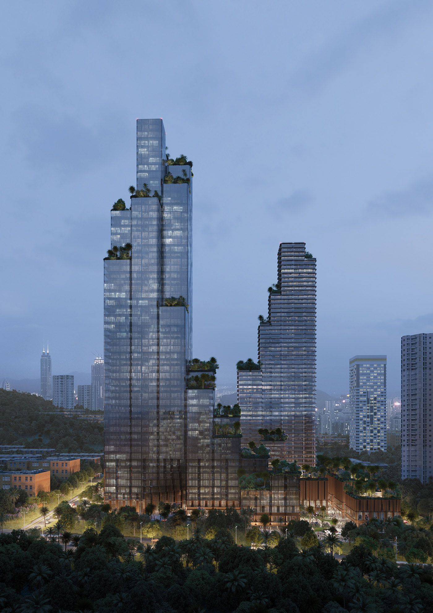Con il complesso Konka, si impone alla città un nuovo paradigma di rigenerazione urbana, volto alla sostituzione del vecchio modello dei centri commerciali chiusi: una torre più alta nell'angolo sud-occidentale del sito che ospita la sede del Gruppo Konka, importante società di produzione di elettronica; all’angolo opposto la torre per appartamenti, che offre ai suoi fruitori una lussuosa panoramica sulla baia di Shenzhen; il complesso poi si smaterializza e ridimensiona fino a comporre un tessuto urbano vivace che riporta immaginariamente a quello trazionale delle città storiche cinesi, frammentato e poroso al paesaggio circostante