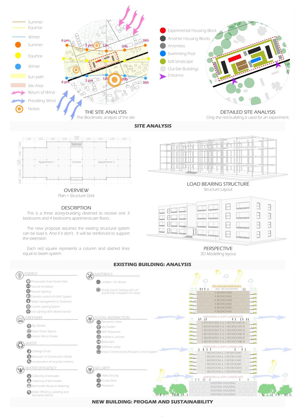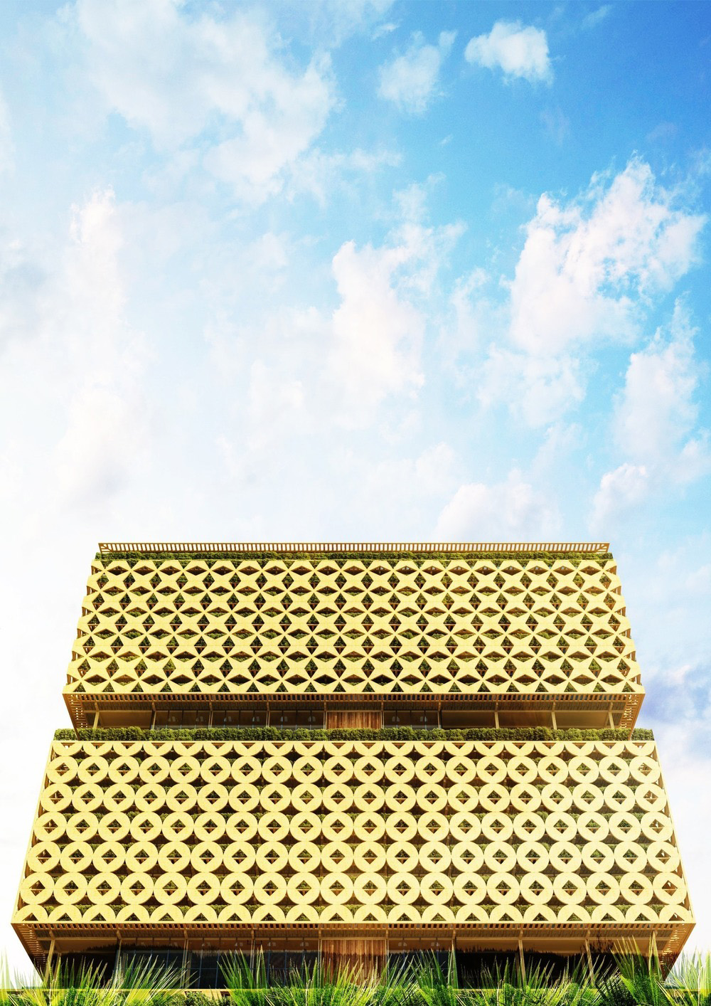 La torre è organizzata in tre blocchi sopra una struttura esistente. Ogni blocco è composto da sei piani attuali. L'involucro di ciascun blocco corrisponde a un particolare simbolo tribale Yoruba. I blocchi sono collegati tra loro raccogliendo spazio e attività sportive o ricreative per i residenti. Dal basso verso l'alto, ci sono unità abitative con 1, 2, 3 e 4 camere da letto. L'altezza della torre consente di beneficiare di elementi naturali come la ventilazione e l'illuminazione. I pavimenti sono circondati da verde e terrazze. L'involucro dell'edificio è come una protezione solare, al di là del suo significato culturale