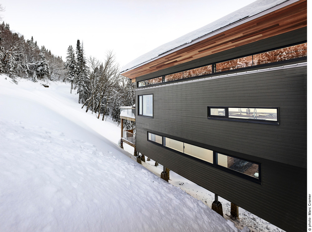 Lo chalet per attività di sci moderno è stato progettato come un rifugio per il fine settimana per una famiglia con bambini di età scolare. Situato sul pendio ripido di una ex collina di sci Mont-Jasper, nei pressi del villaggio di Saint-Donat