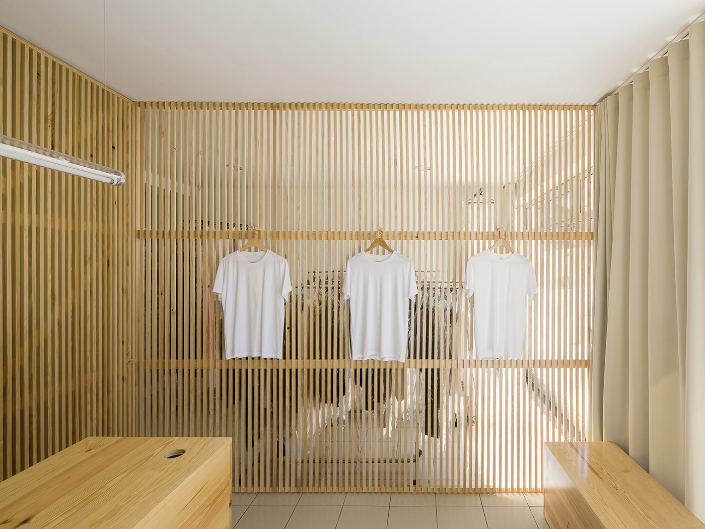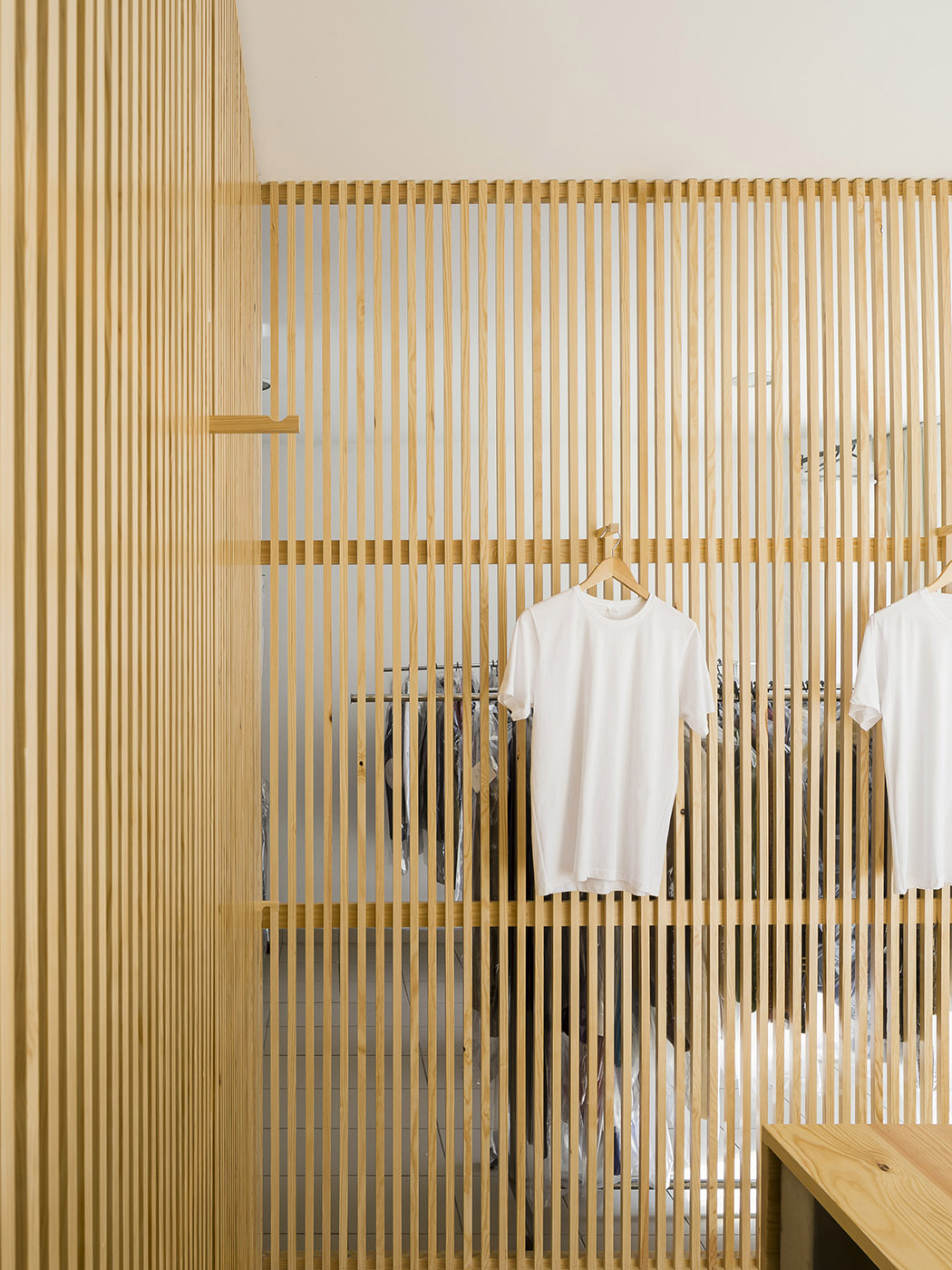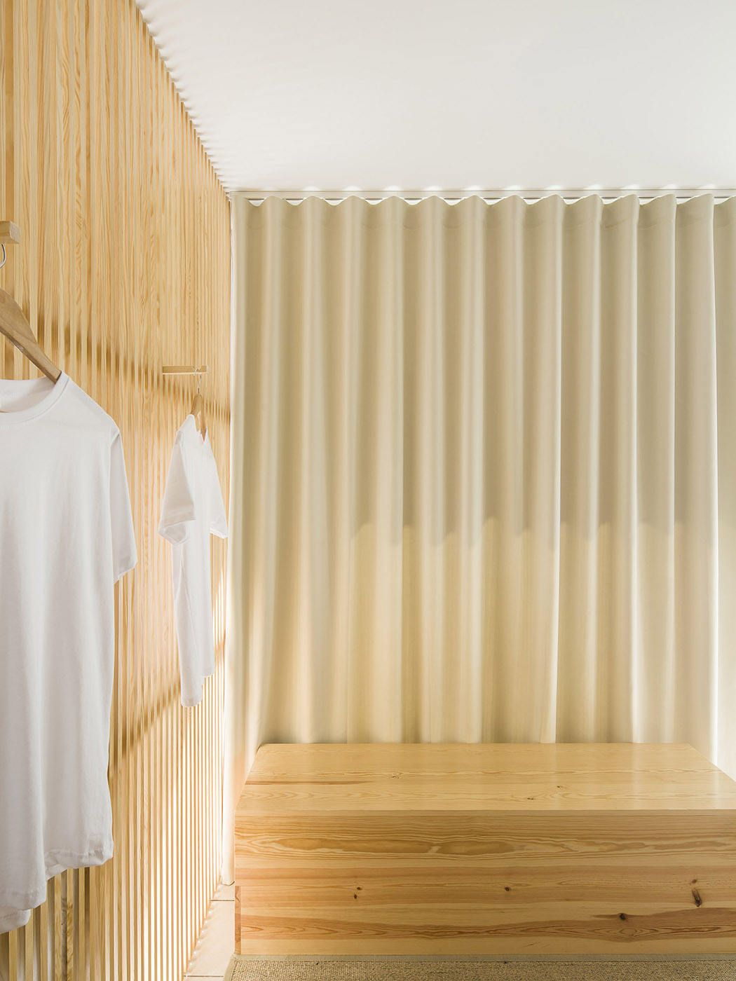 Ad Ansião, un paesino portoghese, Bruno Dias Arquitectura progetta gli interni di una lavanderia, in cui le diverse aree vengono separate tra loro tramite una struttura di doghe in legno che divide gli spazi e allo stesso tempo lascia entrare la luce naturale