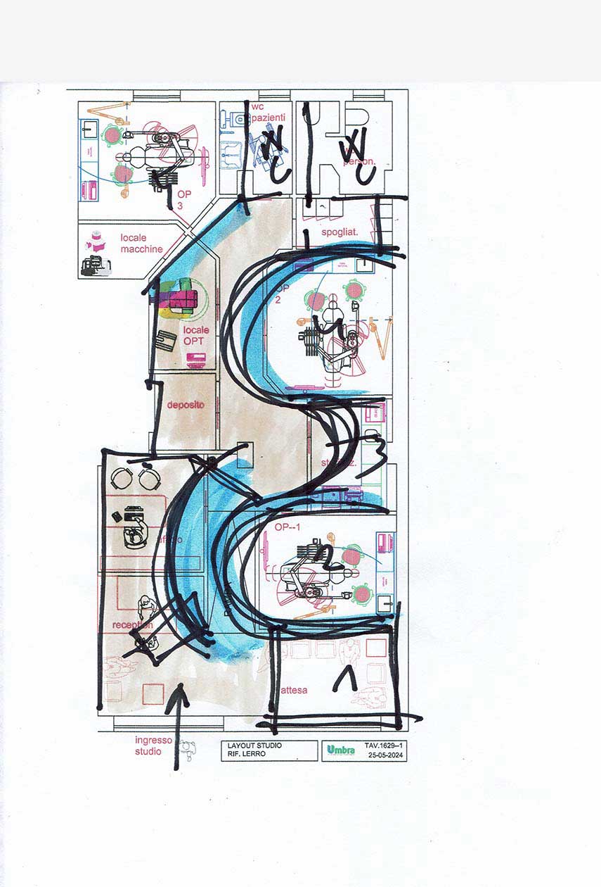 Uno dei progetti di interior design realizzato nel 2025 dallo studio dell’architetto Davide Vargas, lo studio odontoiatrico di Aversa assume la sua nuova conformazione grazie alle linee curve delle sale operative. La schematicità della vecchia planimetria scompare, così come le proporzioni antiquate “stretto e lungo” del corridoio, definendo nuovi spazi organici