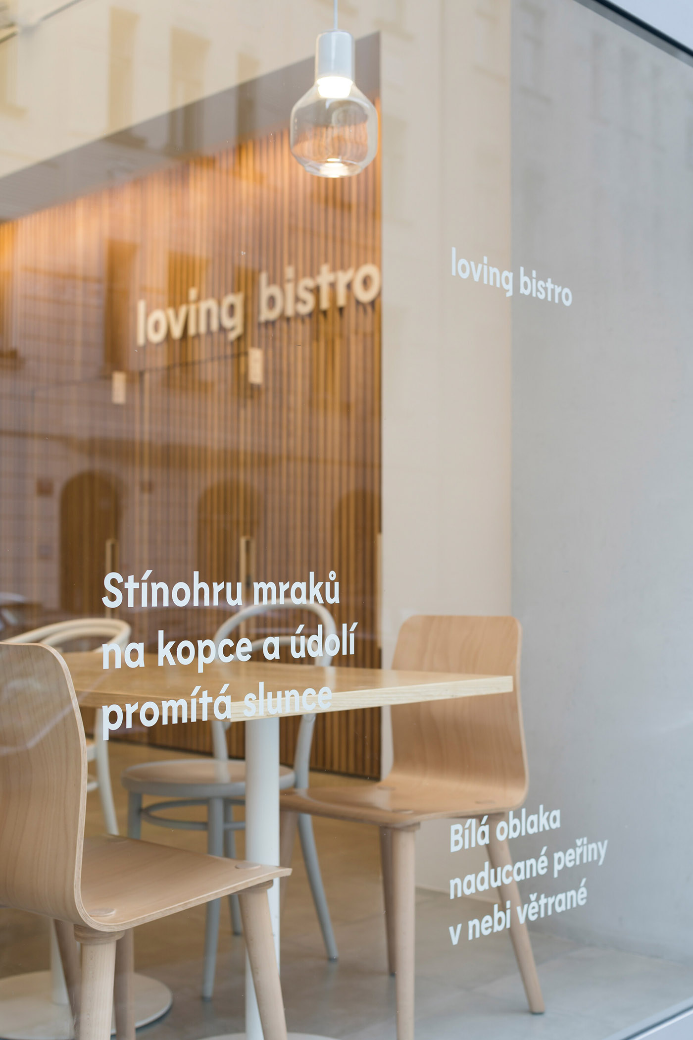 esté architekti per il Loving Bistrò nel quartiere praghese Letnà, disegnano leggerezza e un‘atmosfera tranquilla attraverso lo spazio aperto, il soffitto alto e la luce.