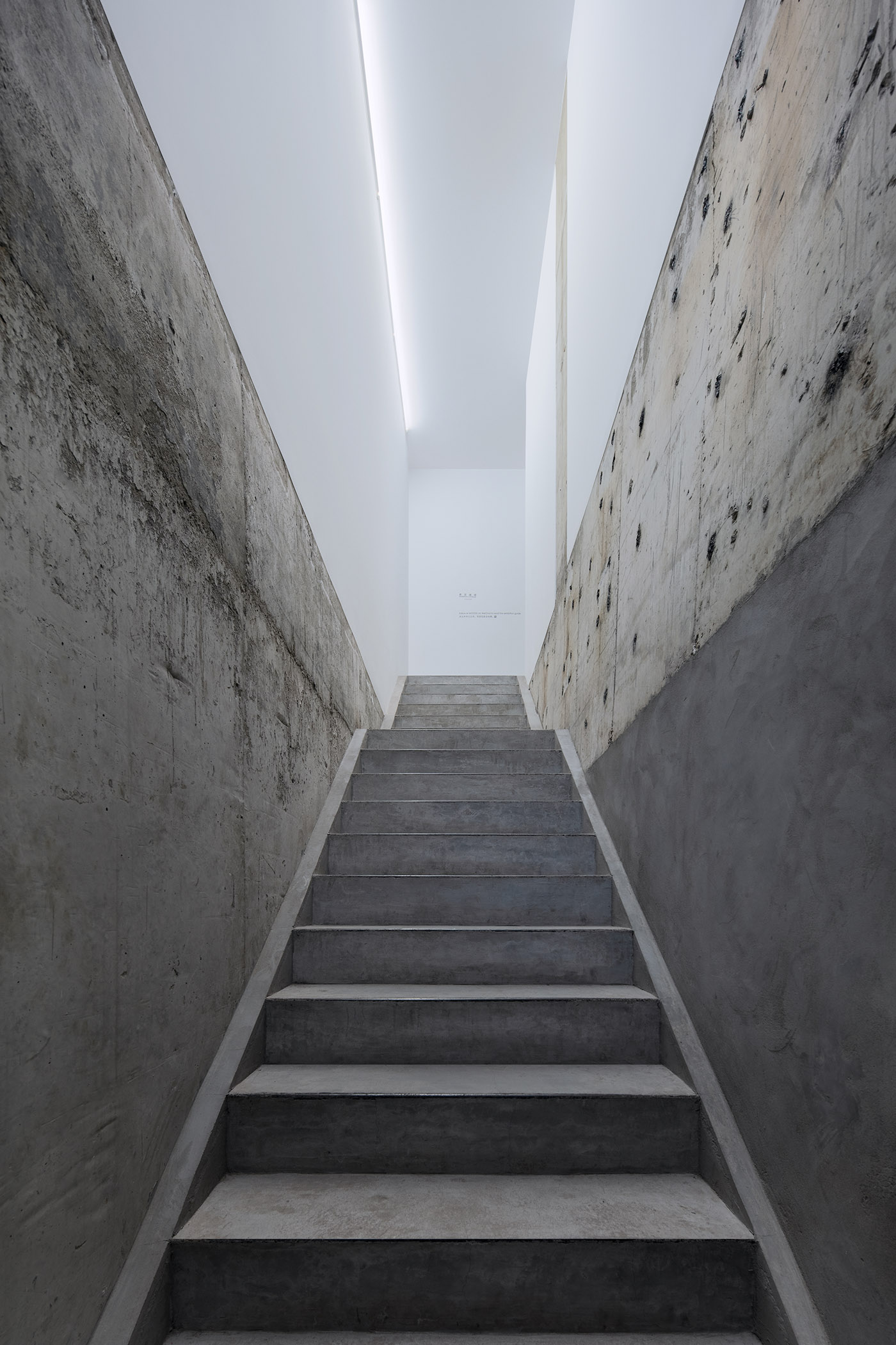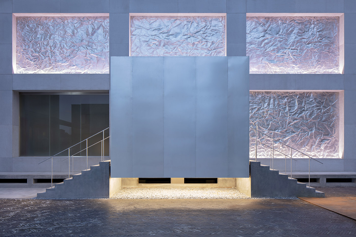 Attraverso percorsi labirintici e atmosfere particolari ottenute mantenendo i materiali originali, luci soffuse e temperatura bassa, l’architettura di B.L.U.E. Architecture Studio induce uno stato contemplativo e concentrato, separato dal rumore e dall’accesso di stimoli della vita urbana. Il tutto è amplificato dalla mancanza di segnale per la rete telefonica all’interno delle sale espositive