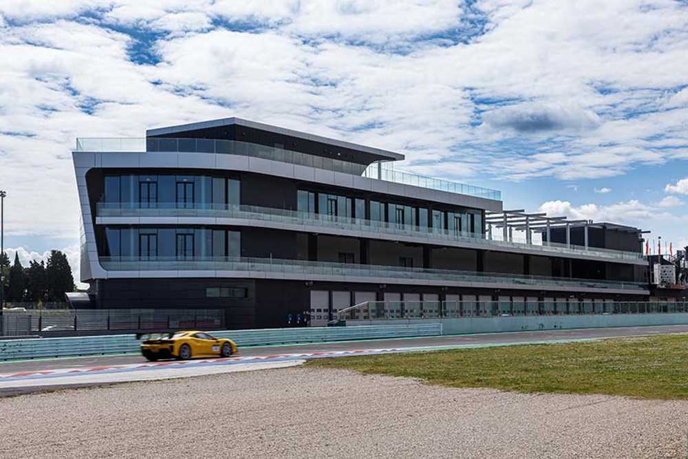 L’intervento di ampliamento del PIT Building del Misano World Circuit Marco Simoncelli, a cura di Mijic Architects Srl, si concentra sull’edificio esistente affacciato sul rettilineo di partenza e arrivo, cuore visivo ed emozionale del circuito. Il nuovo volume, lungo circa 112 metri aggiuntivi per un’estensione totale di quasi 200 metri, nasce con l’obiettivo di creare un segno architettonico forte, riconoscibile da ogni punto della pista e capace di raccontare l’identità del Misano World Circuit. L’ampliamento non solo potenzia la funzionalità della struttura, ma ridefinisce la sua immagine, diventando un elemento iconico del complesso sportivo.