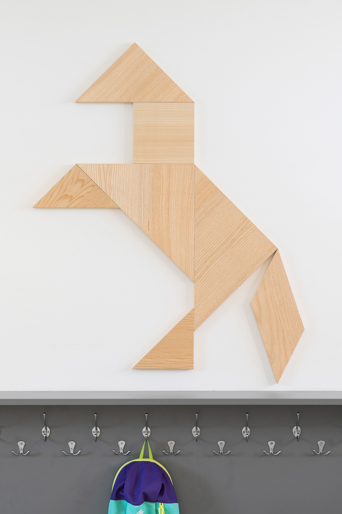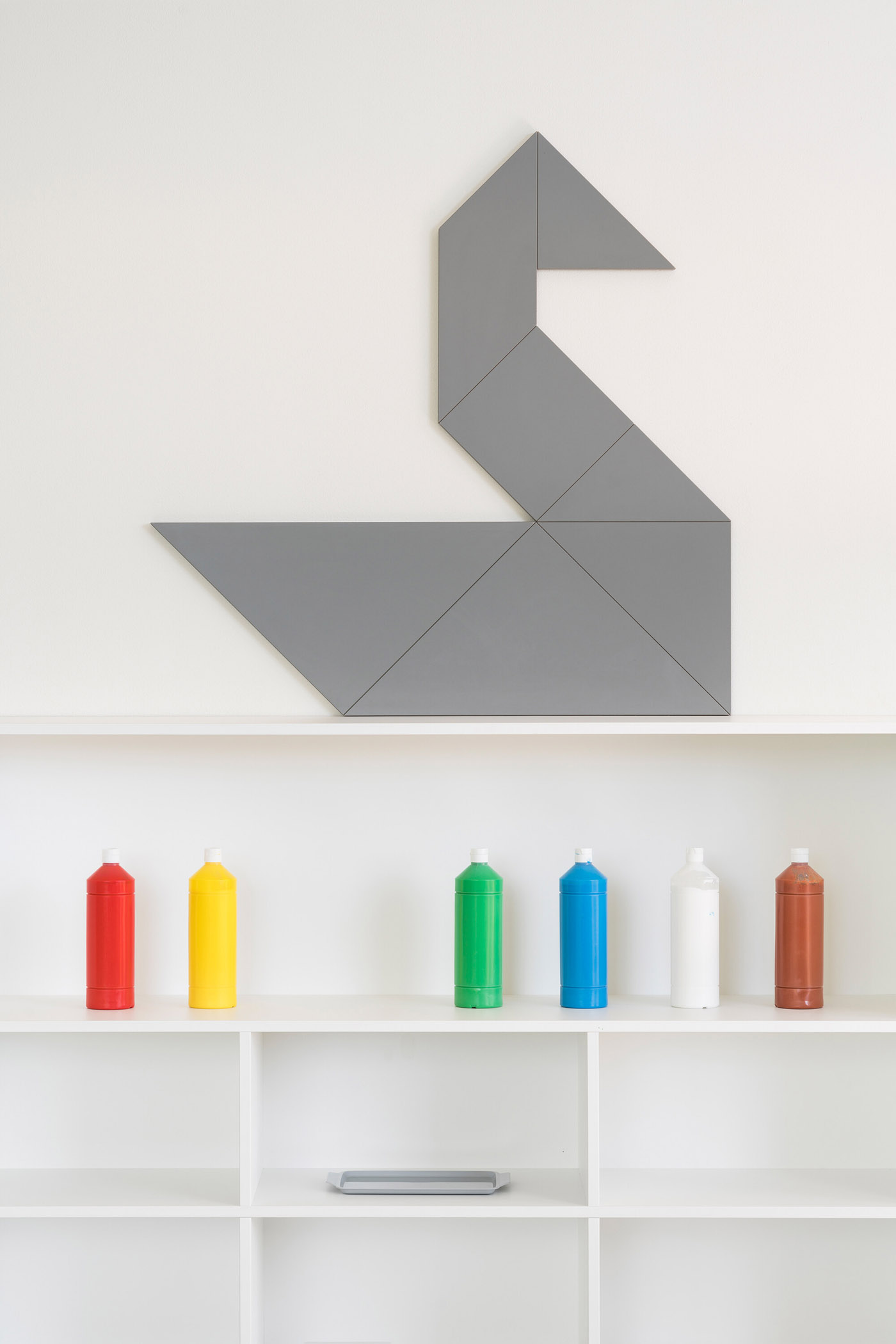 Questi angoli non sono solo simbolici, ma sono posizionati in precisi angoli della stanza e si proiettano dall'interno verso l'esterno, dove creano piccoli angoli nel giardino. La nostra ambizione era quella di preparare un ambiente segmentato su un terreno limitato in modo da attirare l'interesse dei bambini e aiutarli a percepire il mondo e pensare all'architettura come qualcosa di nuovo e intrigante