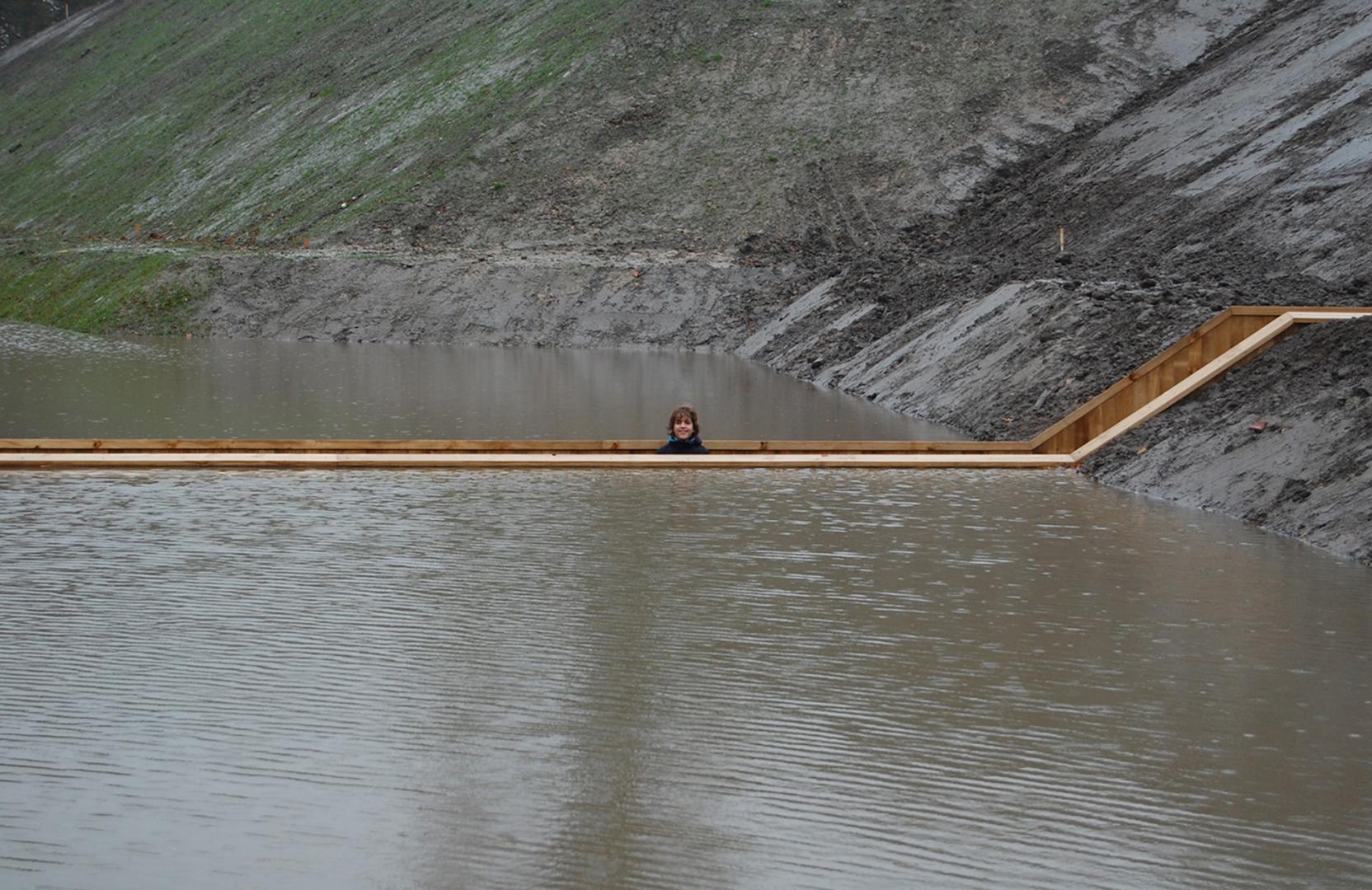 Ecco perché lo studio di Architettura RO&AD progetta un ponte invisibile. La sua costruzione è interamente in legno, impermeabilizzata con foglio EPDM