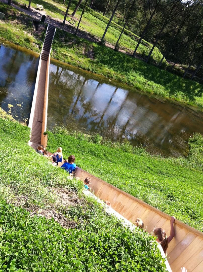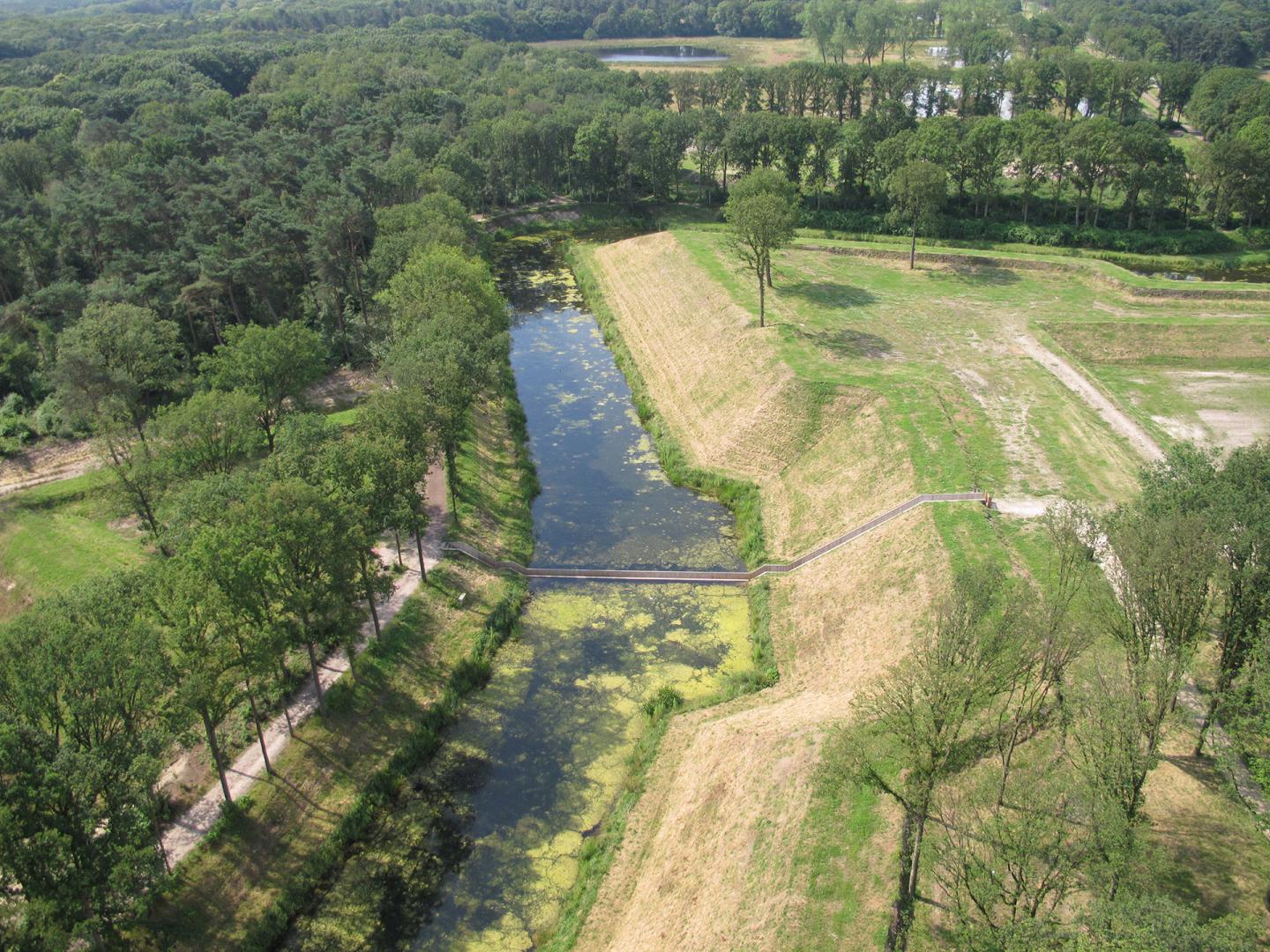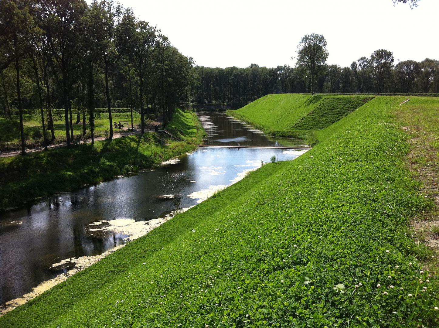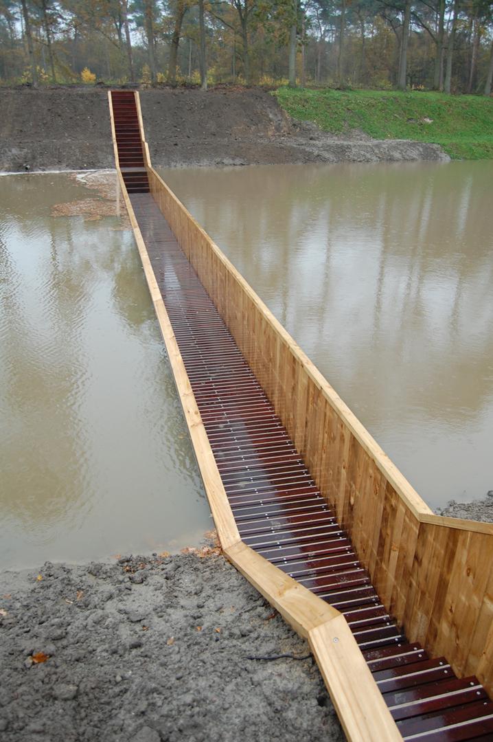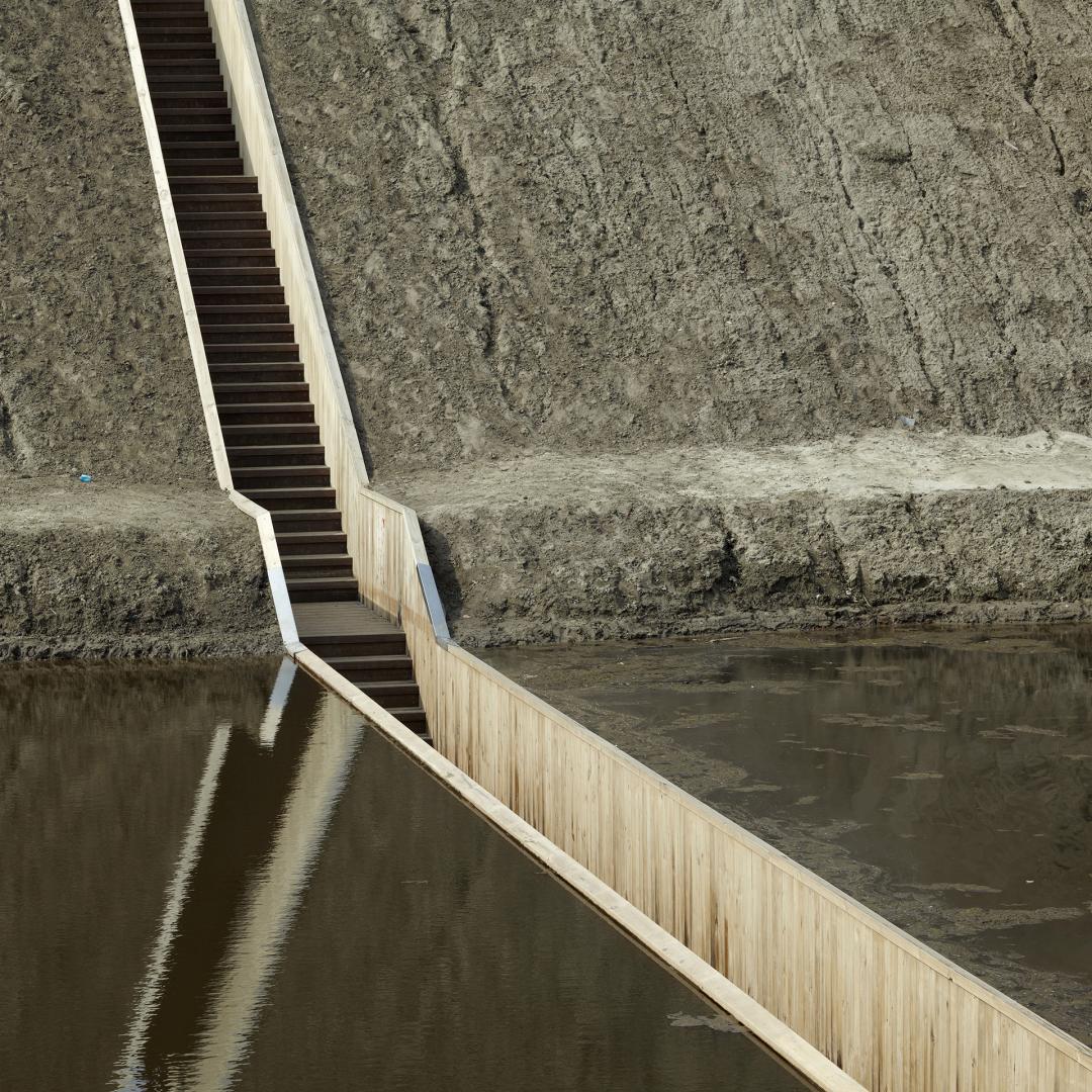 La Linea d'acqua di Brabant, a occidente, è una linea di difesa costituita da una serie di fortezze e di città, con aree soggette a inondazioni nel sud-ovest dei Paesi Bassi. Qui lo studio RO&aAD realizza un ponte interamente in legno come una trincea nell'acqua