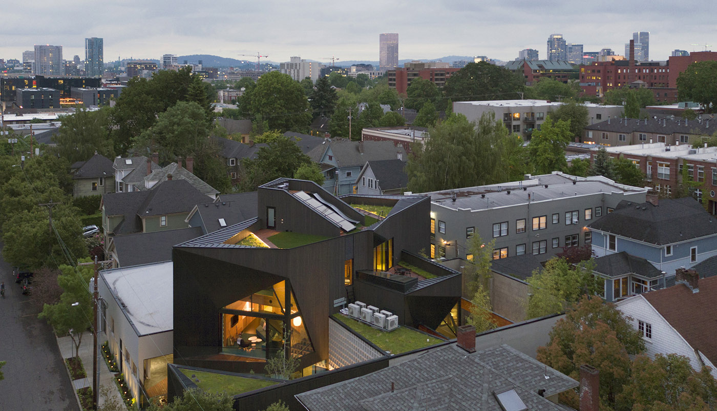Prendendo spunto dai "Building Cuts" di Gordon Matta Clark, i magazzini sono stati tagliati e modificati mantenendo la memoria dei loro confini storici. Rimontando il tetto di uno e tagliandone l'altro, i magazzini sono stati remixati e fusi insieme a un nuovo nucleo centrale. La soluzione a più piani di 7.769 piedi quadrati fonde il passato con il futuro attraverso l'interazione degli spazi: tra gli altri, diverse aree living, una serie di spazi per prestazioni informali, uno studio di registrazione all'avanguardia e un parco per skate al coperto