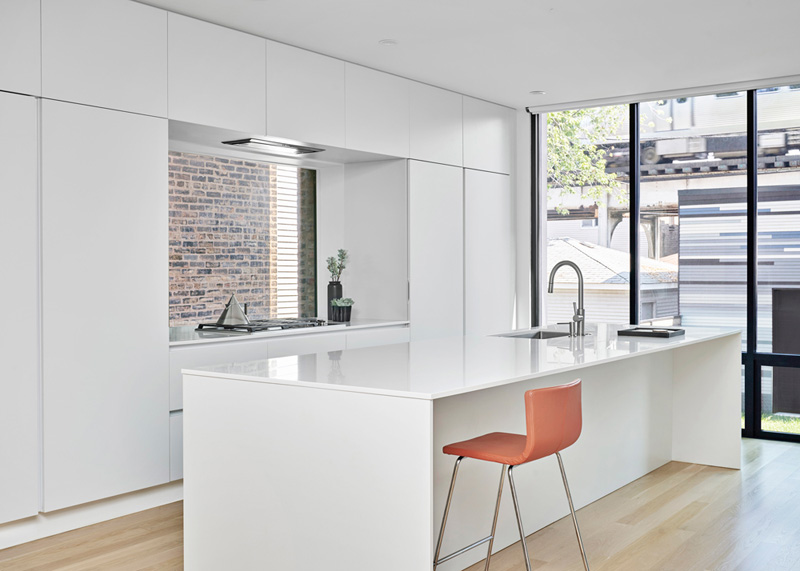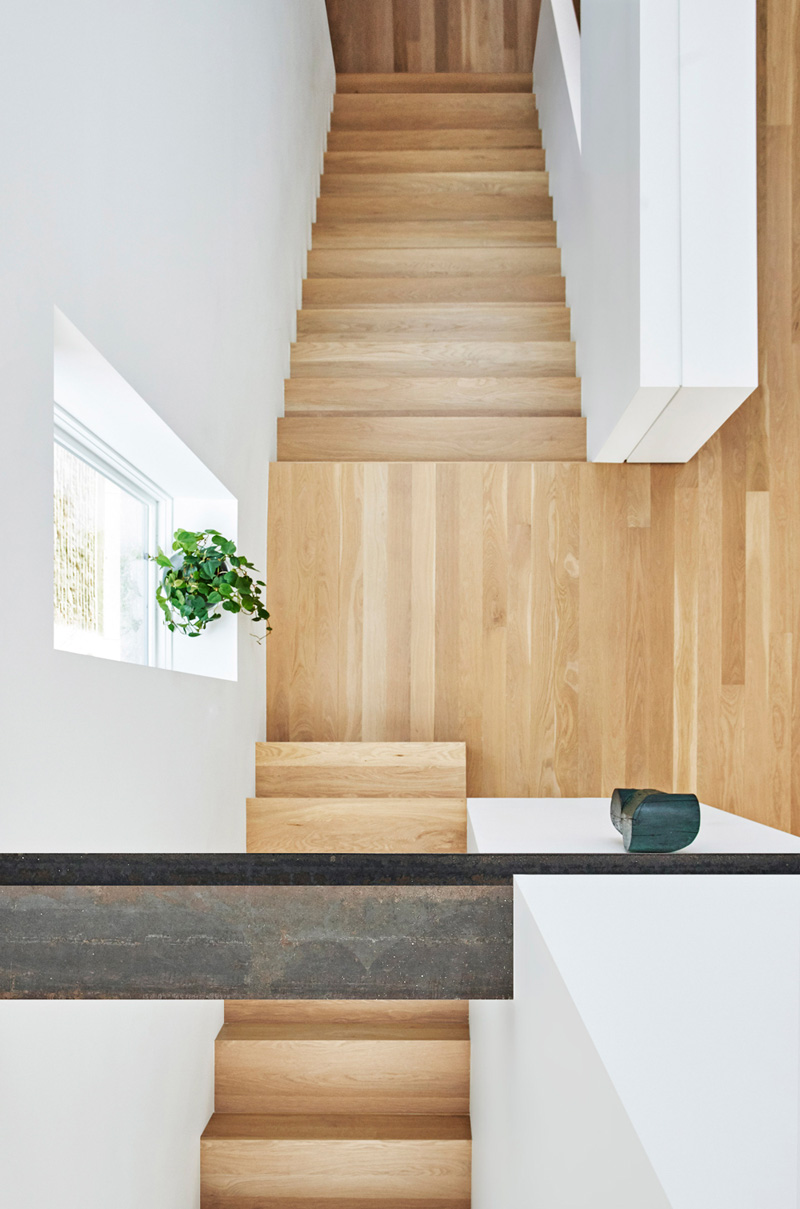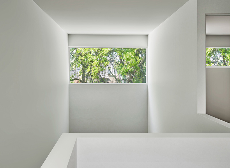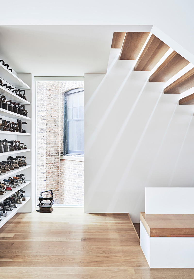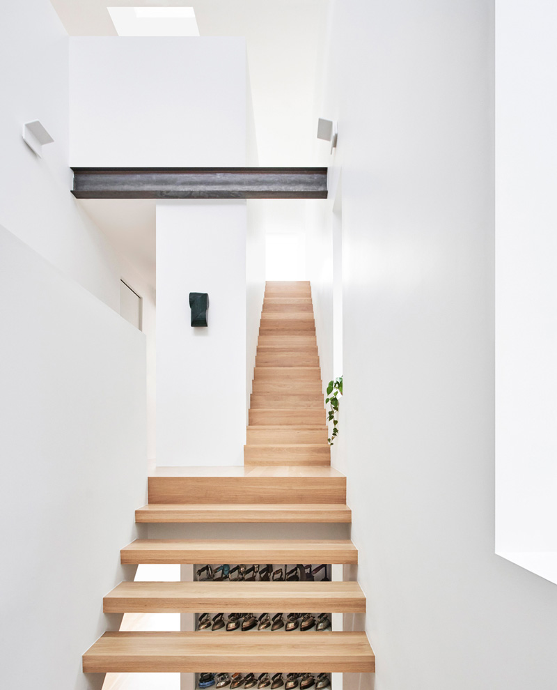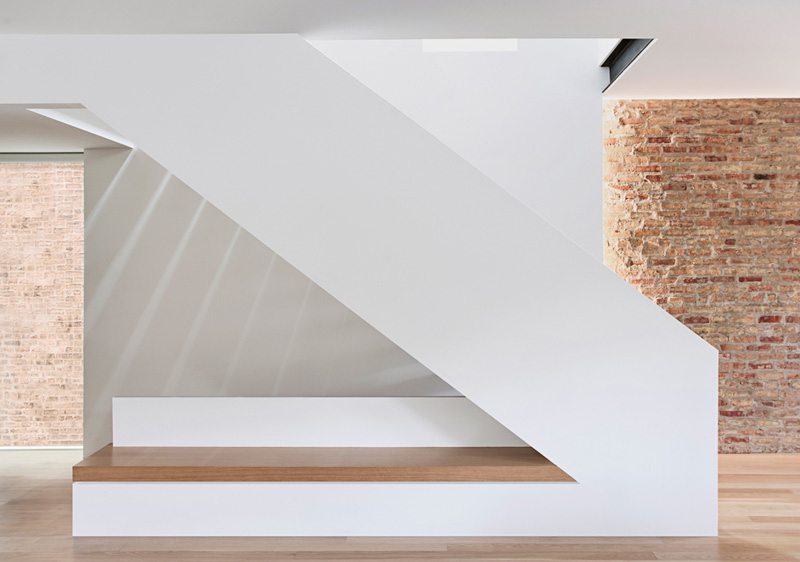 Grazie ad una scala articolata, i vari piani sono connetti tra loro e l'abitazione è innondata di luce naturale. Inoltre, i muri di mattoni esterni ora fanno da sfondo all'interno, sfocando il confine tra gli spazi interni ed esterni