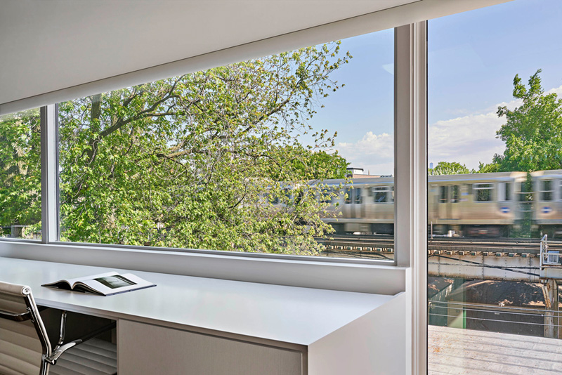 Anche se la parte posteriore dell'edificio che si affaccia sui i binari non è mai stata una priorità progettuale, per lo studio e per i clienti questa facciata era importante quanto quella della parte anteriore