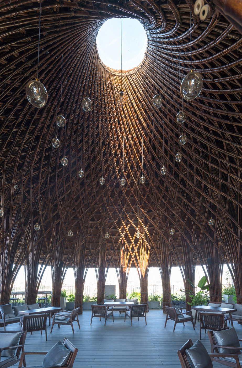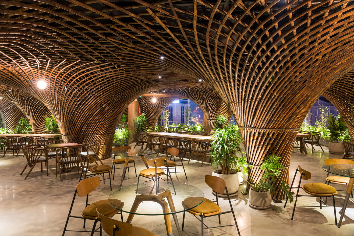 Ad ospitare il progetto della cafferia Nocenco cafe, è un edificio di media altezza che ha subito una ristrutturazione sostanziale. La struttura in cemento, è situata nel cuore della città di Vinh, nel centro nord del Vietnam. L’ultimo piano gode di una vista splendida su case basse e magnifici paesaggi e Vo Trong Nghia Architects progetta proprio qui il ristorante caffetteria desitinato a diventare famoso per il suo iconico design in bamboo.