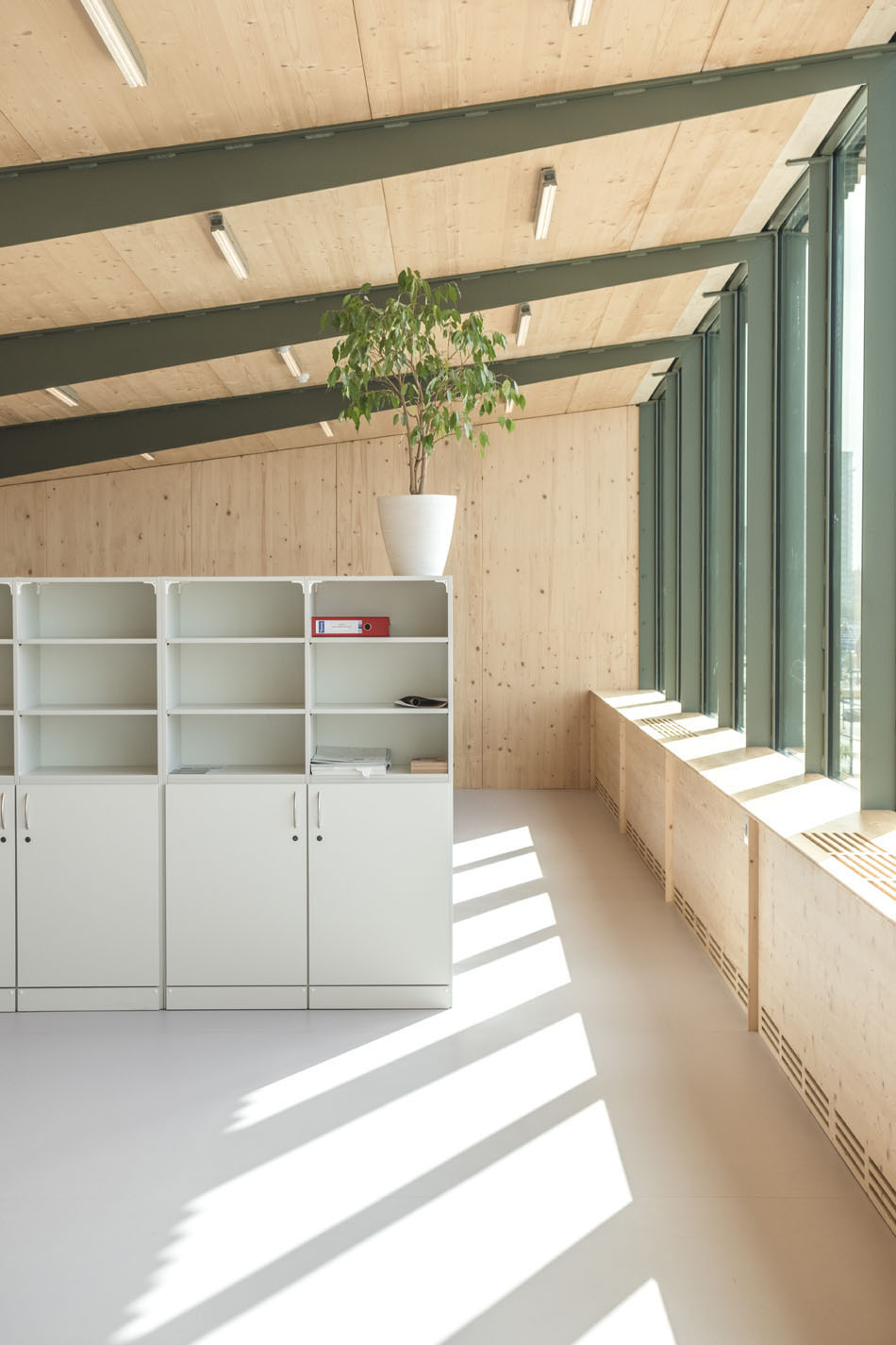 Poot Architectuur, studio belga, ad un edificio per uffici esistente aggiunge un piano, la cui struttura si fa interprete del contesto industriale in cui sorge, con tetti leggermente inclinati e metodi di costruzione propri dell'area circostante