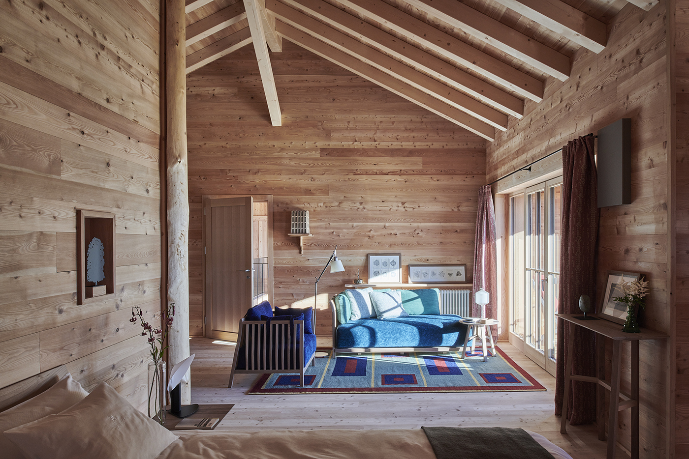 Le Case del Prato Zirmerhof, ideate da AMDL CIRCLE e Michele De Lucchi, si inseriscono nella visione dello studio milanese noto per i suoi progetti di architettura che coniugano etica, estetica e sostenibilità. I due edifici in legno ampliano l’ospitalità dell’Hotel Zirmerhof con sei nuove camere immerse nel paesaggio. Il materiale utilizzato è il legno di Vaia, proveniente dagli alberi abbattuti dalla tempesta del 2018 che colpì anche i boschi circostanti. Questo legno, simbolo di resilienza e rigenerazione, è stato trasformato in un’installazione di arte e architettura perfettamente integrata nel contesto naturale.