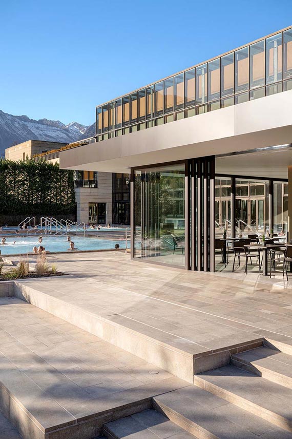 Sono molteplici i progetti di architettura dello studio monovolume che arricchiscono il territorio altoatesino. Il nuovo Wintergarten delle Terme di Merano viene completato nel 2024 e ridisegna con elegante leggerezza l’area per la ristorazione del complesso dedicato al wellness. Un volume trasparente dotato di tre facciate scorrevoli, completamente apribili, è sostenuto da quattro setti in cemento armato interni: in questo modo la flessibilità stagionale dell’edificio è totale