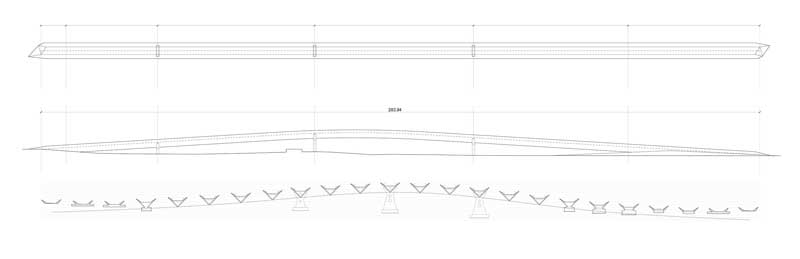 Con una lunghezza totale di 283 metri, la passerella Onda Atlántica, progettata da Onda Arquitectura, si erge come un’elegante scultura urbana sospesa sopra la città di Las Palmas. Concepita per attraversare spazi pubblici e progetti di outdoor senza alcun apparente sforzo strutturale, la passerella è composta da tre campate drammatiche di 63 metri ciascuna, tutte prive di supporti intermedi. Questa configurazione crea un’inattesa sensazione di leggerezza e sospensione nell’aria. L’opera non è soltanto un semplice mezzo di collegamento, ma una scultura che attraversa lo spazio urbano, aggiungendo un senso di bellezza e stupore a chi la percorre e a chi la osserva da lontano.