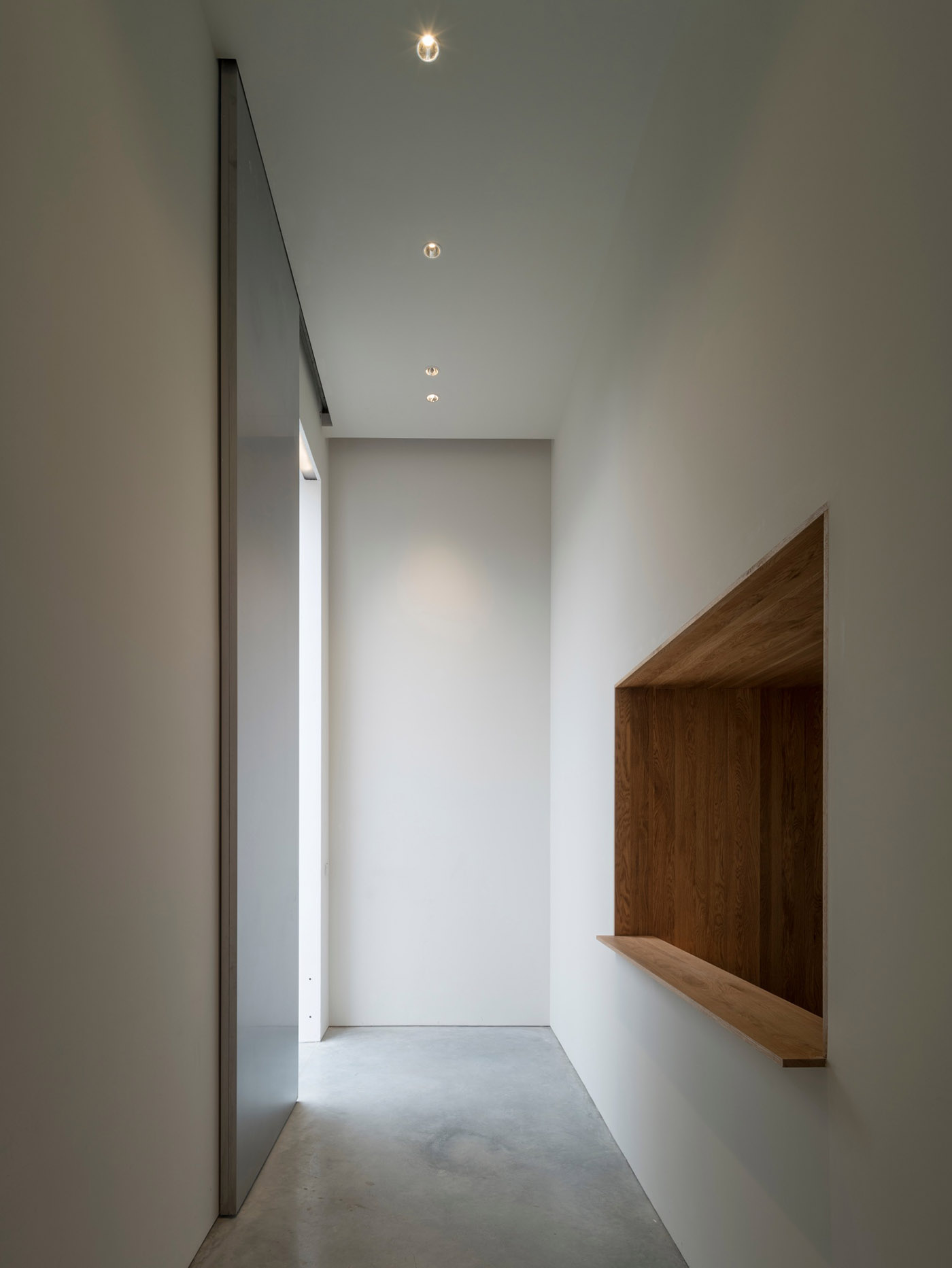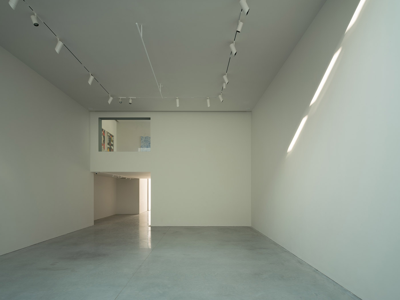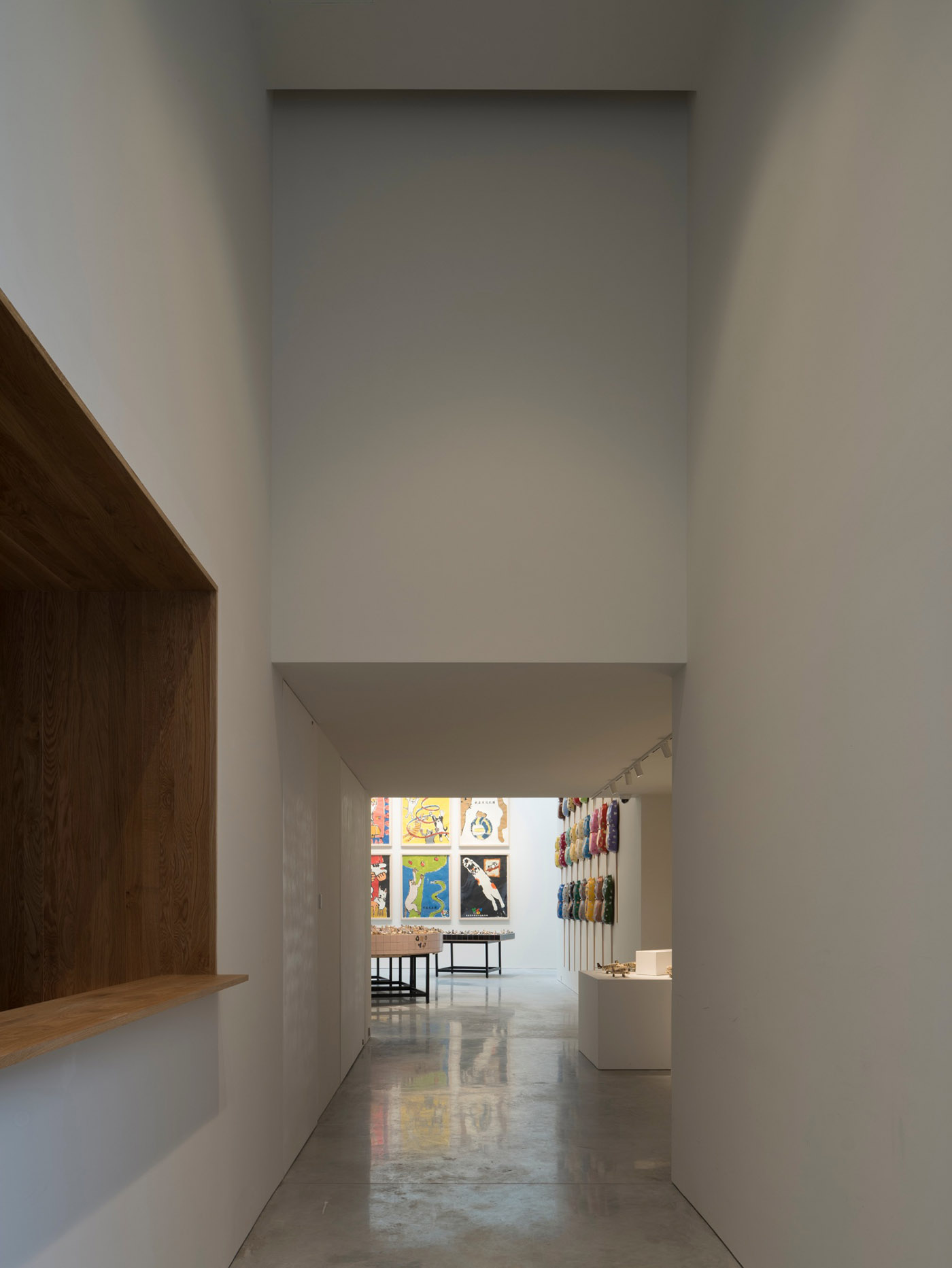 Negli interni della galleria vengono utilizzate pitture murali solidcolor a bassa saturazione, pavimenti in cemento e legno e arredi in legno disegnati su misura dando una sensazione semplice, pura e serena allo spazio