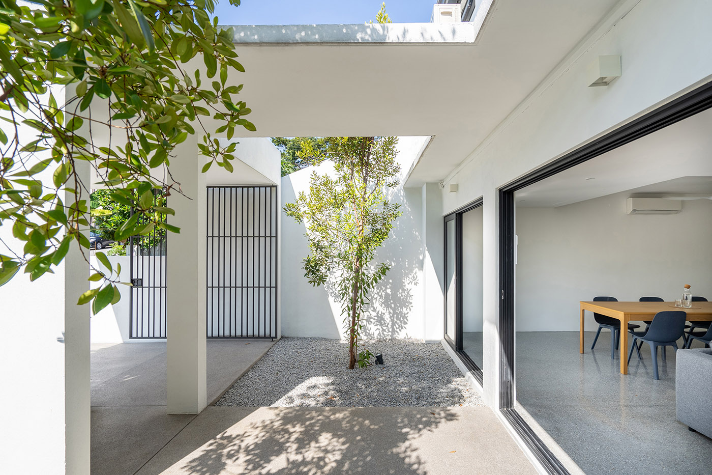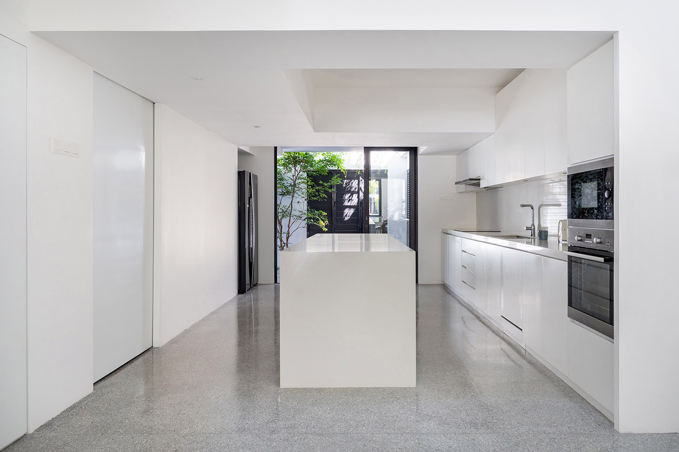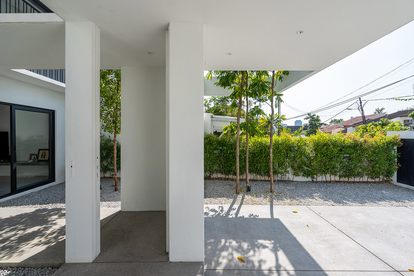 Fabian Tan Architect che ha curato la ritrutturazione della casa per la facciata della casa prevede una forma audace a forma di T. Entrando all'interno dell'abitazione, si percepisce un'estensione dell'interno verso l'esterno ma anche verticalmente, verso l'alto. Il piano terra è stato dotato di spazi aperti e tutti i piani sono collegati tra loto tramite un vuoto centrale, che assicura una buona illuminazione naturale e un'ottima ventilazione.