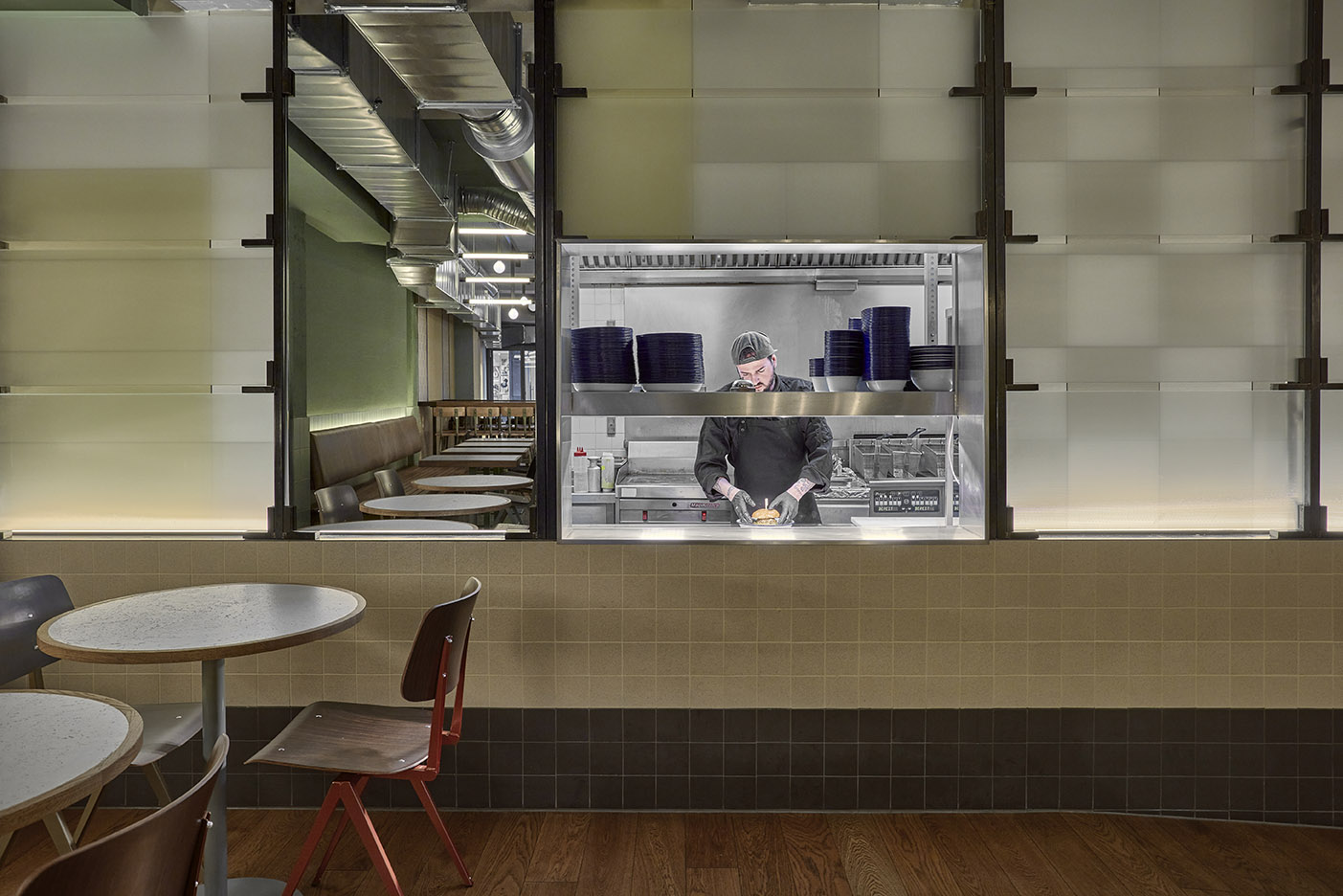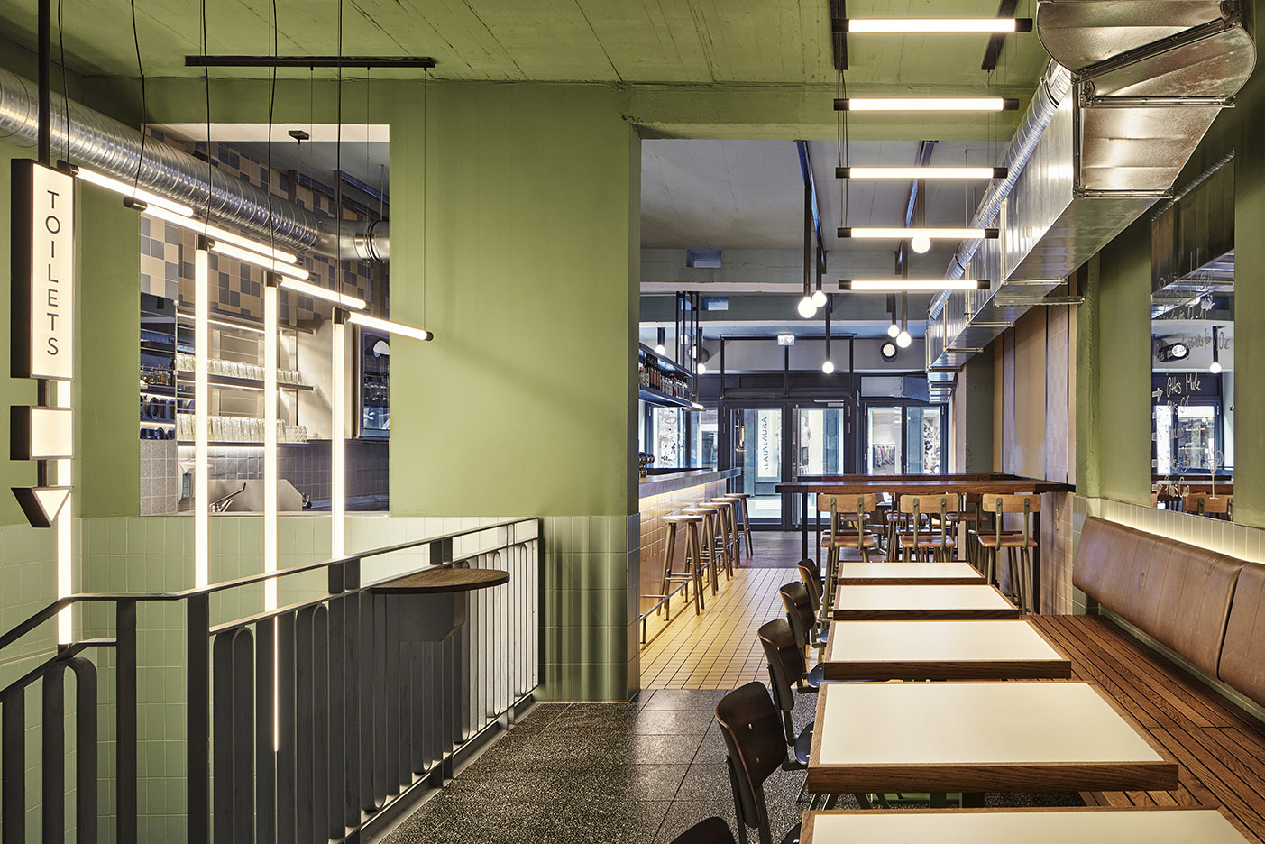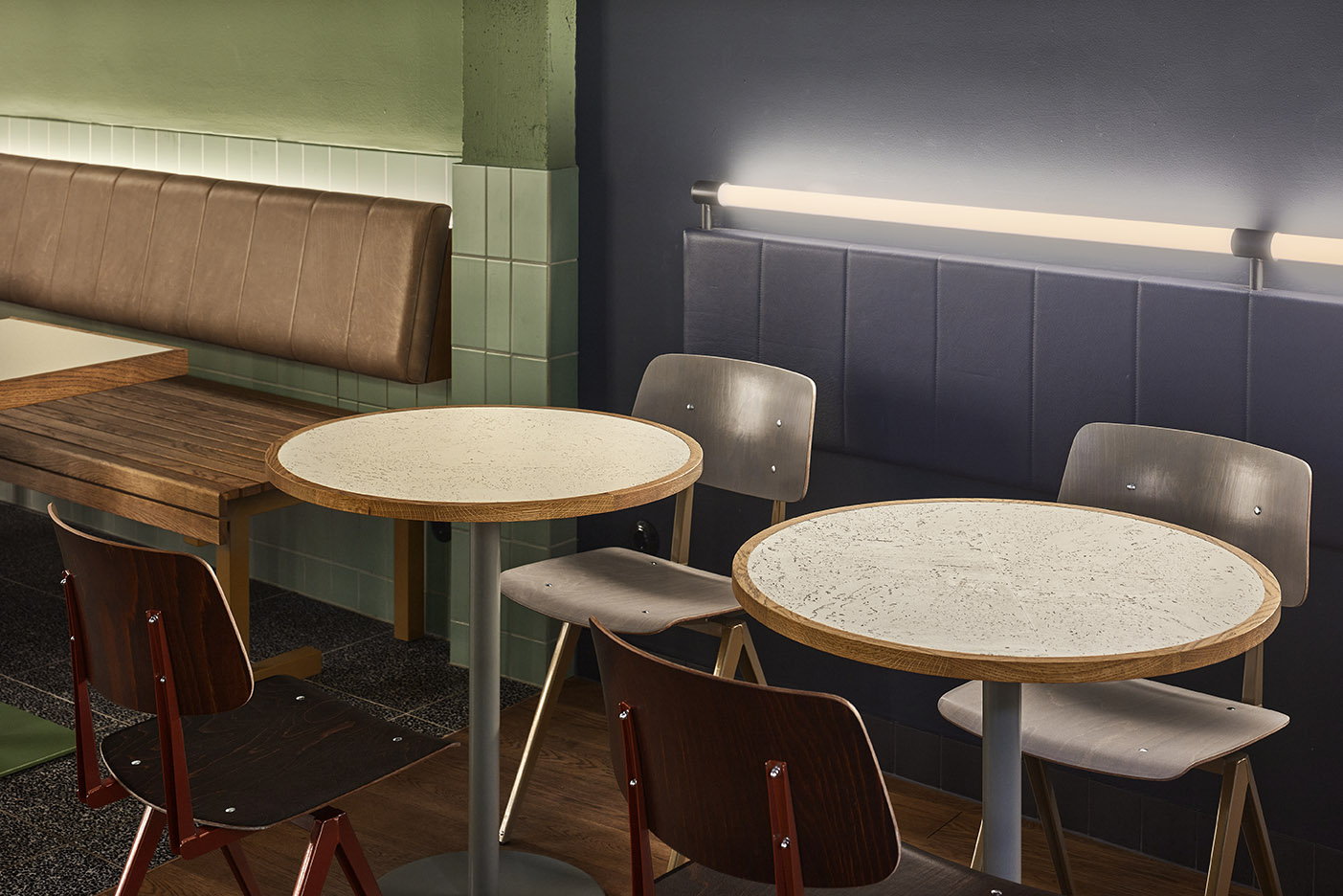 Con una trama a forma di L, questo nuovo ristorante di hamburger è avvolto intorno a un edificio d’angolo. Nuovi materiali vengono introdotti nello spazio, donando qualità e calore, mentre l'ispirazione dell'ex panificio e dell'identità di Otto forma pezzi d'arredo ed elementi speciali come corpi illuminanti e segnaletica