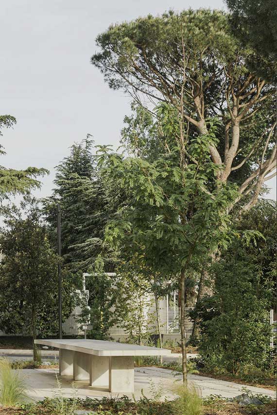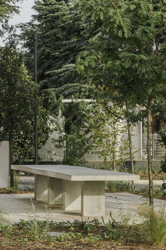 Renna Studio, insieme a Cosimo Balestri Studio, si occupa della progettazione degli spazi esterni di una fabbrica tessile con l’obiettivo di trasformarli da aree di stoccaggio e movimentazione delle merci a spazi sociali e naturali. Un nuovo Perimetro verde, alternato alle zone funzionali, per riconnettere produzione, persone, città e natura. L’intervento lavora per sostenere la biodiversità anche riutilizzando le rocce degli scavi e i tronchi che era necessario abbattere come allestimento dei giardini molto apprezzati come rifugi da insetti e piccoli animali selvatici