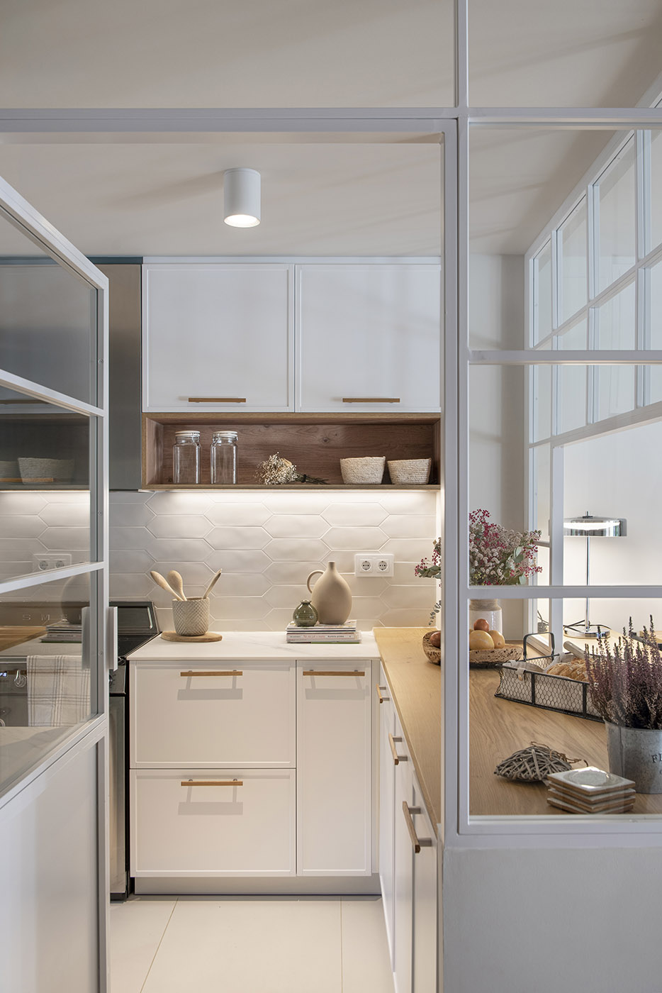 Una cucina con vista sul soggiorno o un bagno di servizio con vista sulla camera da letto: è questa l'idea dello studio spagnolo Egue y Seta che, nel progetto di un appartamento a Barcellona, omaggia l'integrazione degli spazi in cui viviamo