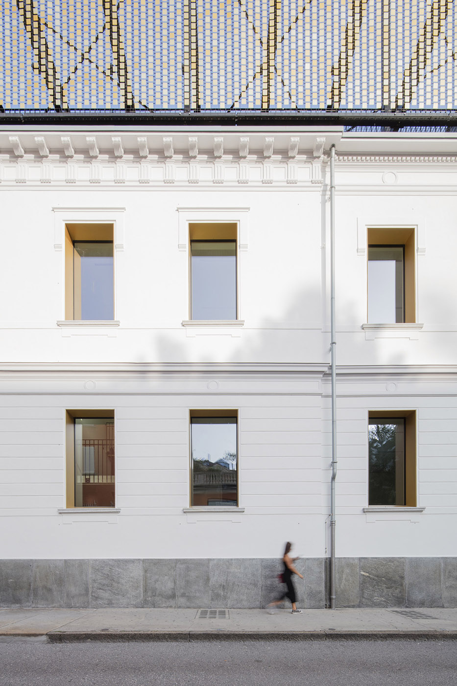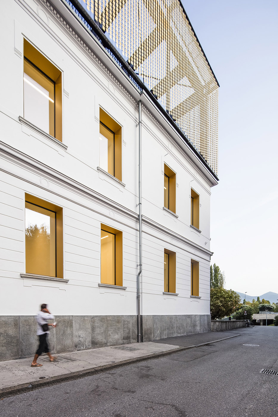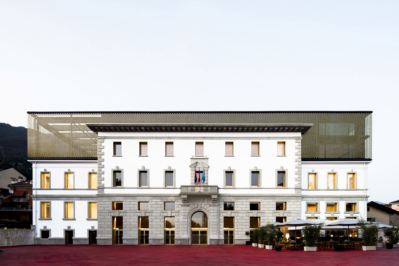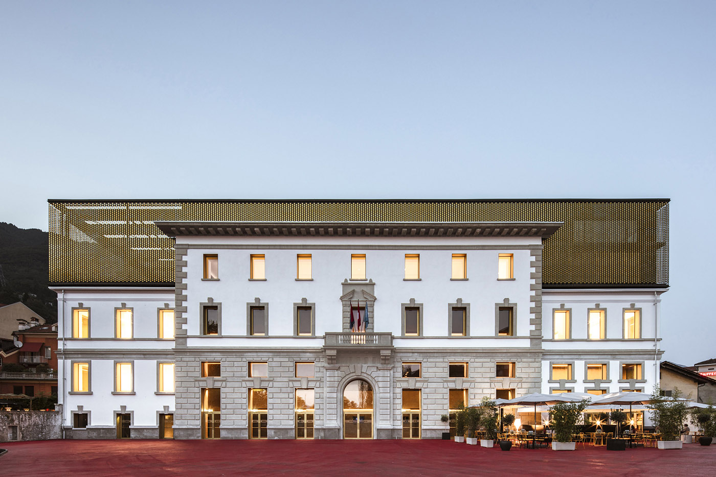 Lo studio AZPML amplia la struttura esistente del Palazzo Scolastico per ospitare una piattaforma multiculturale di arti cinematografiche a Locarno, in Svizzera, caratterizzata da una facciata cinetica composta da bandiere dorate che ondeggiano al vento