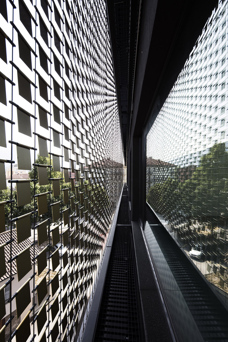 Il volume dell'edificio è stato elevato alla massima altezza consentita dal regolamento, e la nuova parte mostra una trama che viene associata al marchio del Festival, una facciata cinetica composta da 45.000 bandiere dorate che ondeggiano sotto l'azione del vento, producendo modelli dinamici