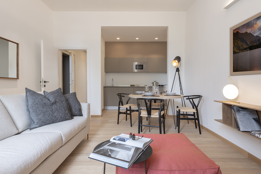 Pierattelli Architettura firma sei appartamenti hotel in un edificio fiorentino neoclassico, Palazzo Matteotti, dallo stile contemporaneo ed elegante, in cui l'ospite è al centro del progetto e l'atmosfera domestica incontra il comfort alberghiero