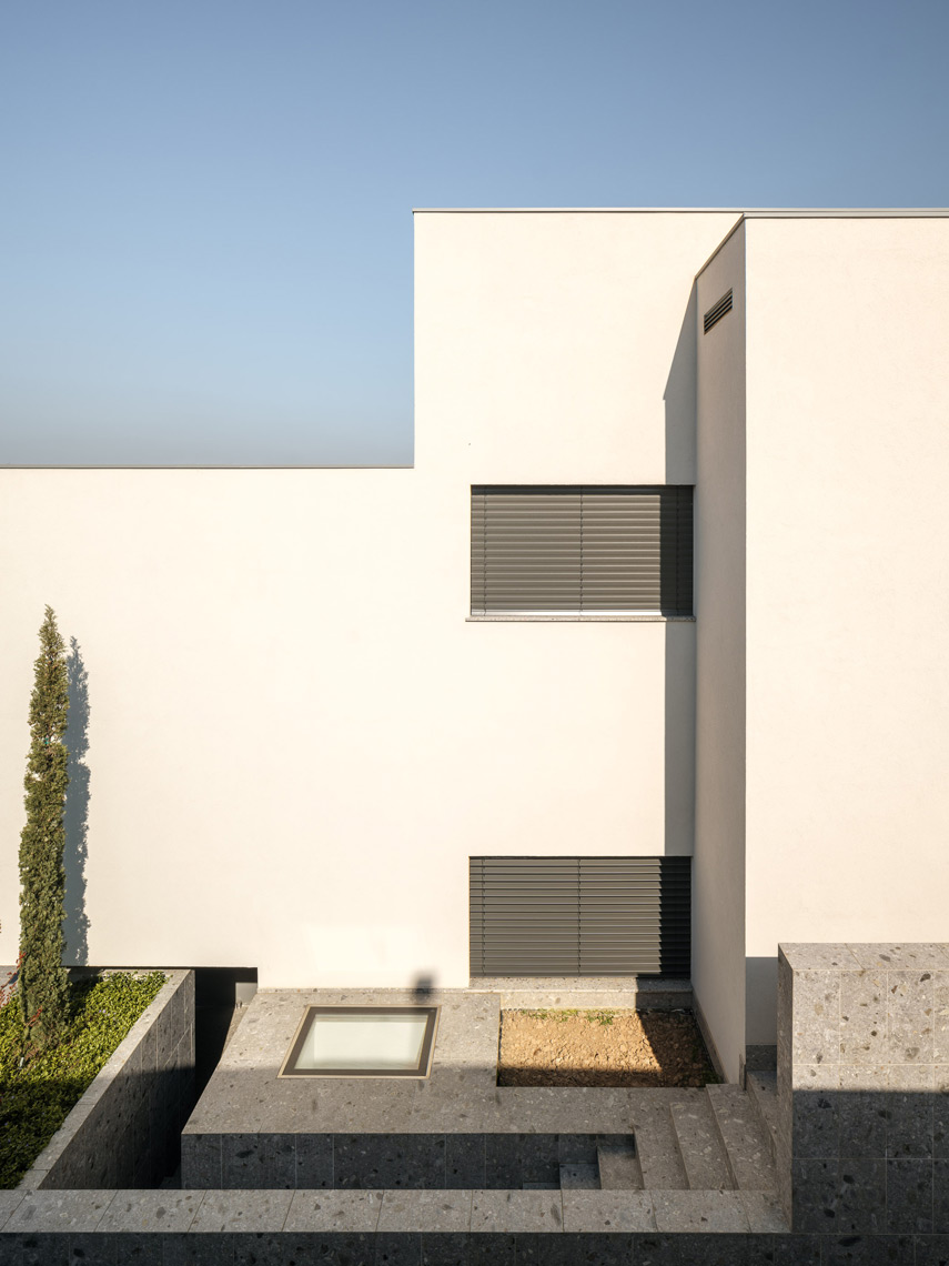 Il progetto Panorama, firmato da DEP Studio Arch. David Moriggia, nasce su un lotto complesso caratterizzato da un dislivello di 12 metri. Dopo la demolizione delle vecchie strutture rurali, la nuova costruzione si sviluppa dal basso verso l’alto, dalla piscina a sfioro agli spazi abitativi, sempre in dialogo con il contesto naturale. La distribuzione verticale collega i vari livelli, accompagnando lo sguardo dal paesaggio vallivo fino agli ambienti più alti dell’abitazione.