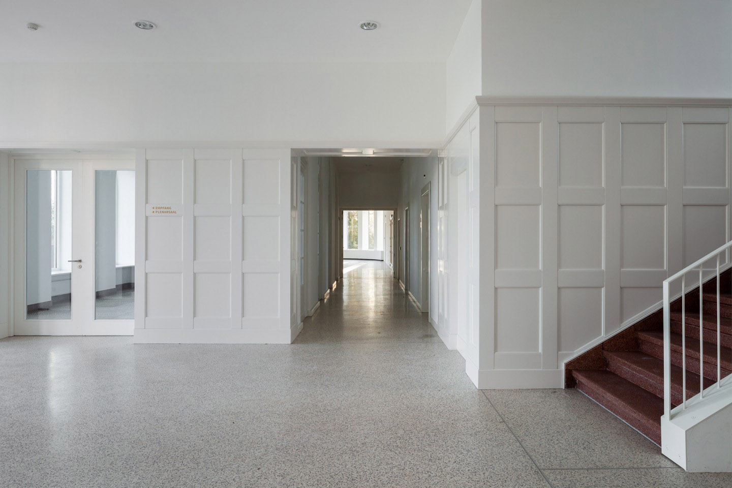 Il monumentale sanatorio oggetto della ristrutturazione risale al 1906, e viene trasformato in un edificio per uffici moderno e multifunzionale, dotato di standard a basso consumo energetico. L'ampliamento progettato, invece, contiene spazi rappresentativi in cui avverranno le riunioni parlamentari