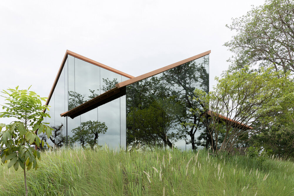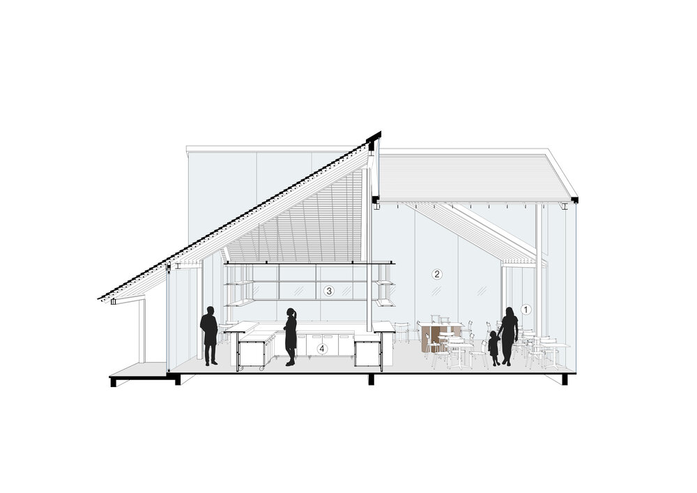 La pendenza del tetto è stata divisa in 4 segmenti, la sua geometria ruota attorno alla colonna centrale per seguire il flusso di circolazione a livello del suolo, invitando la luce naturale ad illuminare la parte inferiore del tetto lungo tutti e 4 gli assi. In particolare, Le tegole di terracotta sono state selezionate come materiale del tetto per i suoi valori tradizionali e la sua tecnica di installazione primitiva ma intricata