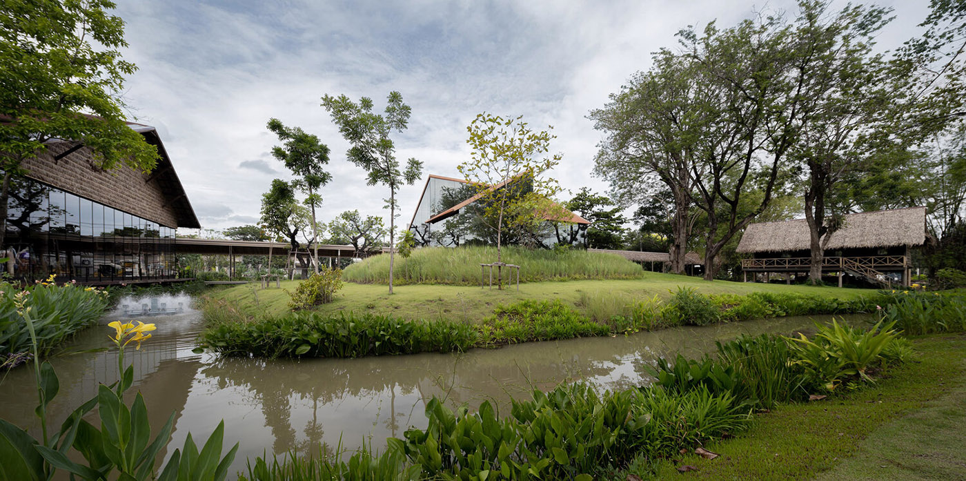 Il Patom Organic Village nella Thailandia centrale pone enfasi su un’estetica audace e accattivante, che si incontra con la saggezza culturale e tradizionale della località del Suan Sampran