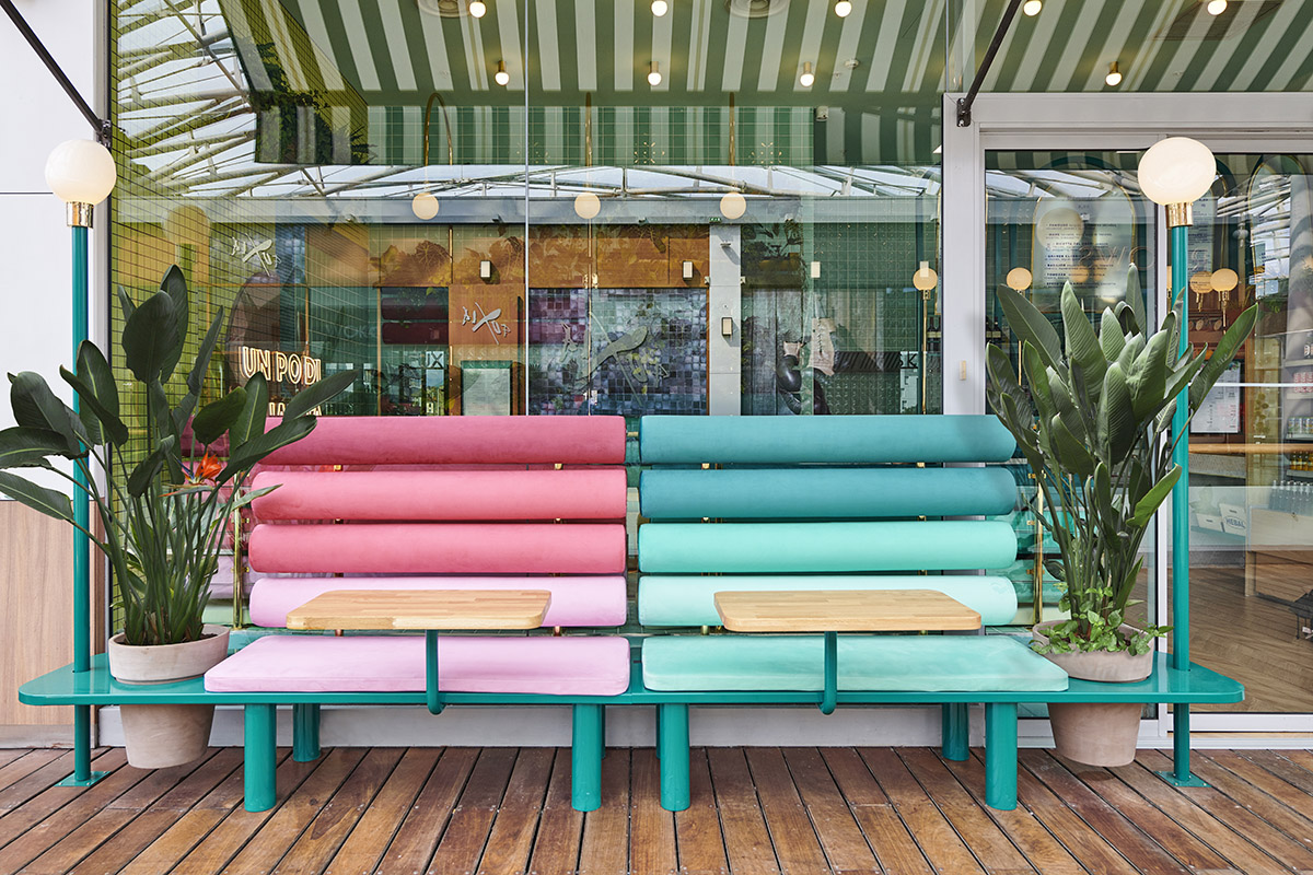 Attraverso l’uso di piante, legno e terracotta, d'altra parte, il tocco naturale è stato subito visibile. Come per molti progetti disegnati da Masquespacio, una grande quantità di colore è utilizzata per illuminare la giornata dei consumatori di Piada, mentre si godono una deliziosa piadina