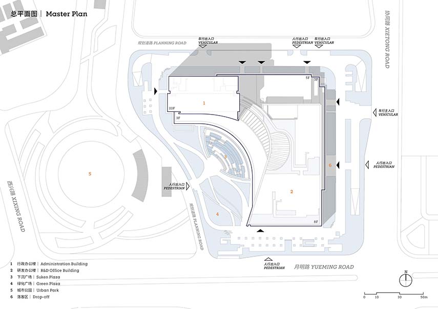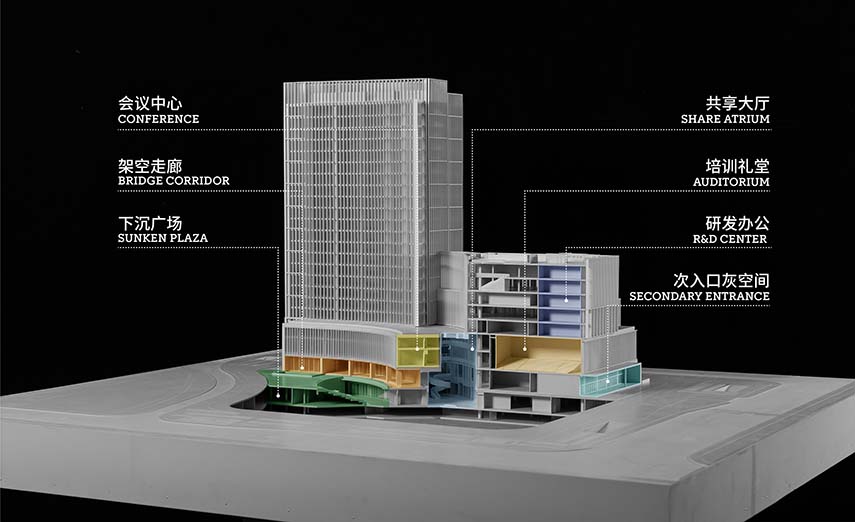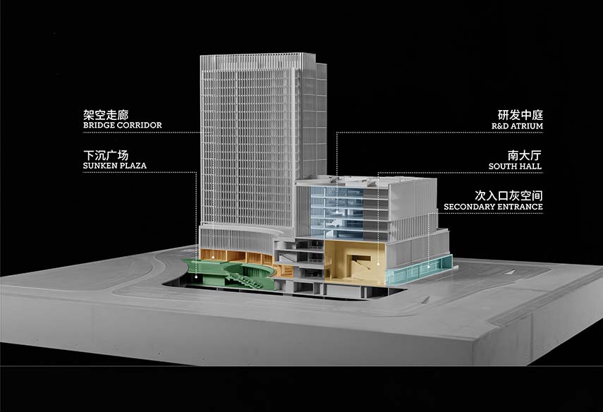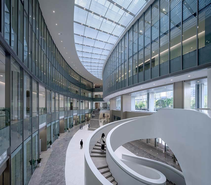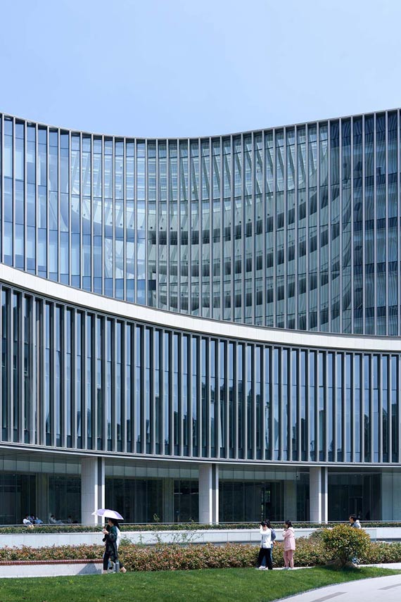 Gli Uniview Headquarters sono uno dei progetti di architettura aziendale dello studio GOA, una delle più potenti istituzioni di progettazione architettonica della Cina. Sono composti da una torre amministrativa di 22 piani, un centro Ricerca e Sviluppo di 8 piani e un Centro per servizi e attività per il tempo libero alla base. Un’arteria organizzativa coperta scorre al piano terra distribuendo i grandi flussi di utenti in modo agevole tra la moltitudine di attività ed edifici