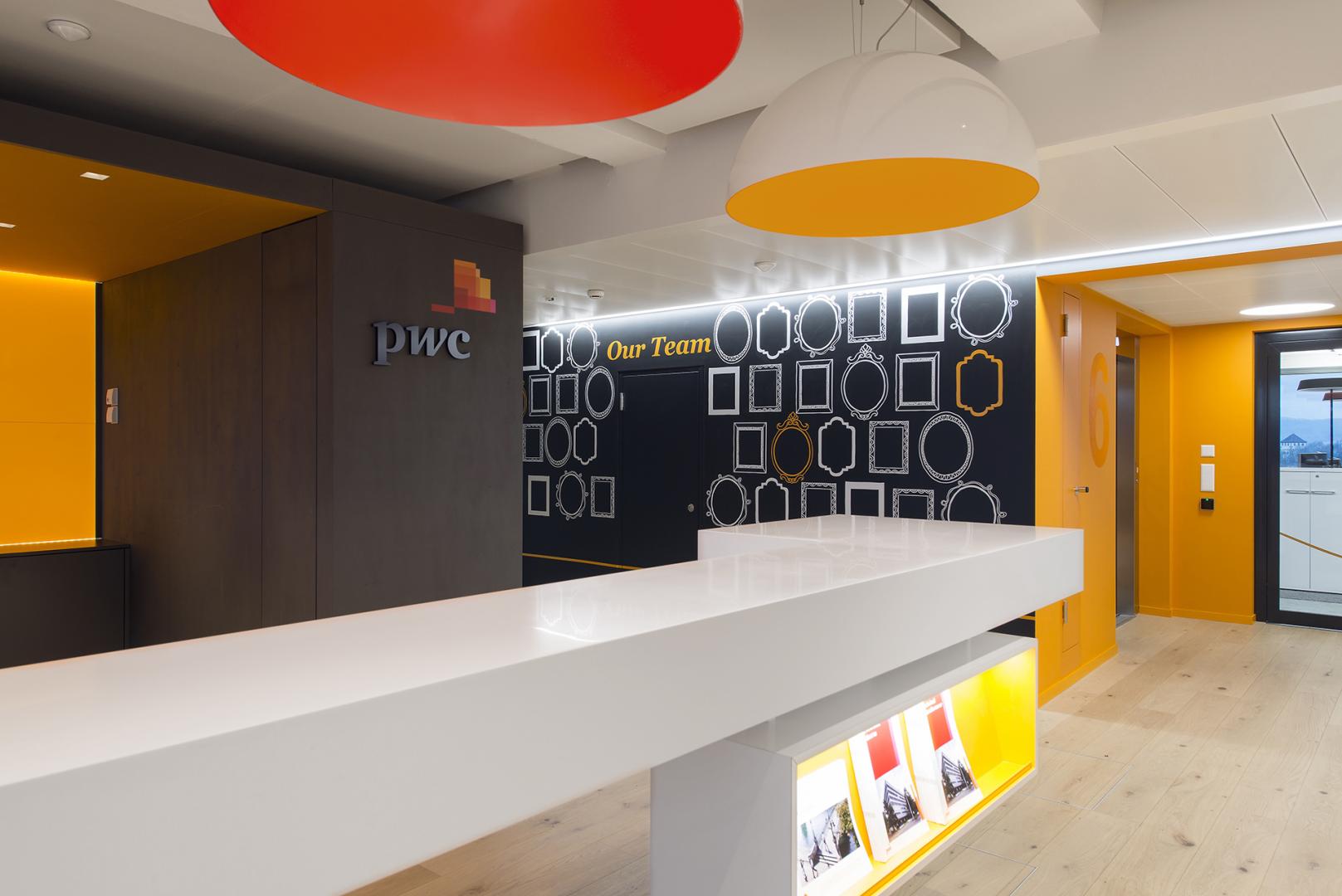 Ciascuno degli spazi è stato progettato con spunti che indicano l'utilizzo. L'area del lavoro più tranquillo, per esempio, impiega i toni calmi del verde ed è sottilmente divisa per la privacy e per favorire maggio silenzio. La gente vuole essere orgogliosi del loro posto di lavoro e l'azienda per cui lavorano, ed Evoluzione Design ha utilizzato colori e strumenti di comunicazione, tra cui la fotografia e graphic design, al fine di garantire l'ufficio è una rappresentazione tridimensionale ispiratore della cultura, l'atteggiamento e la mentalità di PwC Svizzera