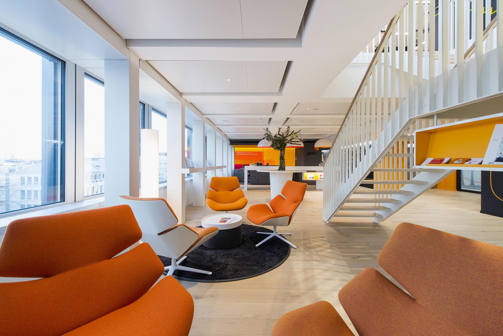 All'ufficio di PwC Svizzera a Basilea, Evoluzione Design si è concentrato sull'obiettivo di rafforzare i dipendenti come un modo per aiutare a gestire i livelli di stress e aumentare i livelli di energia. L'ufficio offre una vasta scelta di aree di lavoro ed i dipendenti sono liberi di scegliere il tipo di ambiente che meglio si adatta al loro umore e al compito in un dato momento. Possono essere riuniti in una tavola rotonda, lavorare al bar nelle zone sociali del caffè o utilizzare una cabina telefonica per una maggiore privacy quando si effettuano le telefonate
