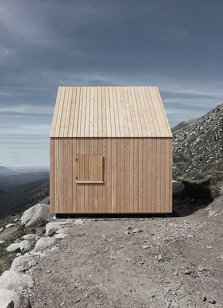 Rifugio a grandi altezze. Architettura semplice e monomaterica