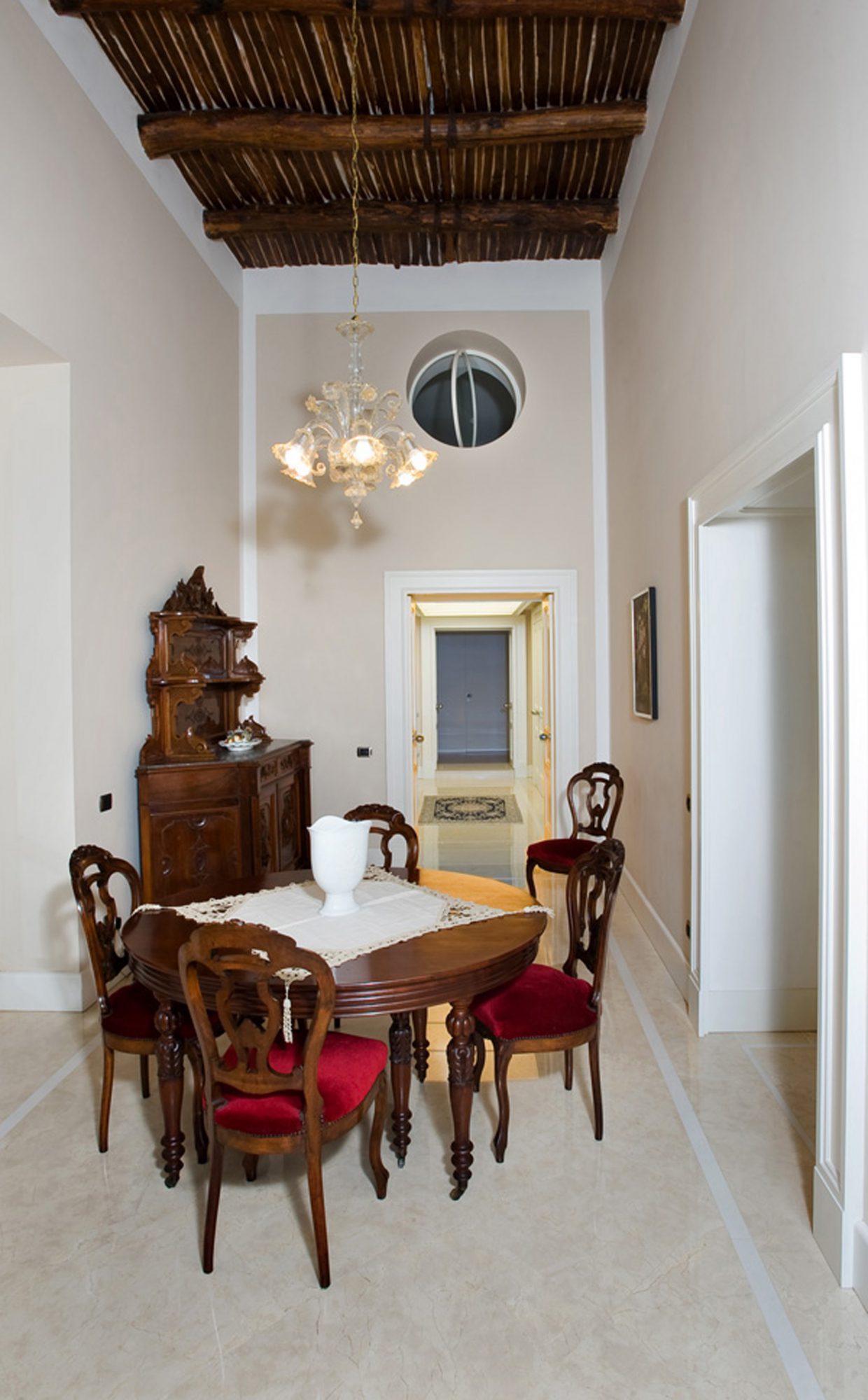 In quest’ottica l’Architetto Raffaele Maria Ricciardi realizza un soppalco, che permette di sfruttare la volumetria della casa senza però oscurarne l’altezza, ben percepibile anche grazie alla conservazione dell’originario soffitto ligneo, opportunamente restaurato